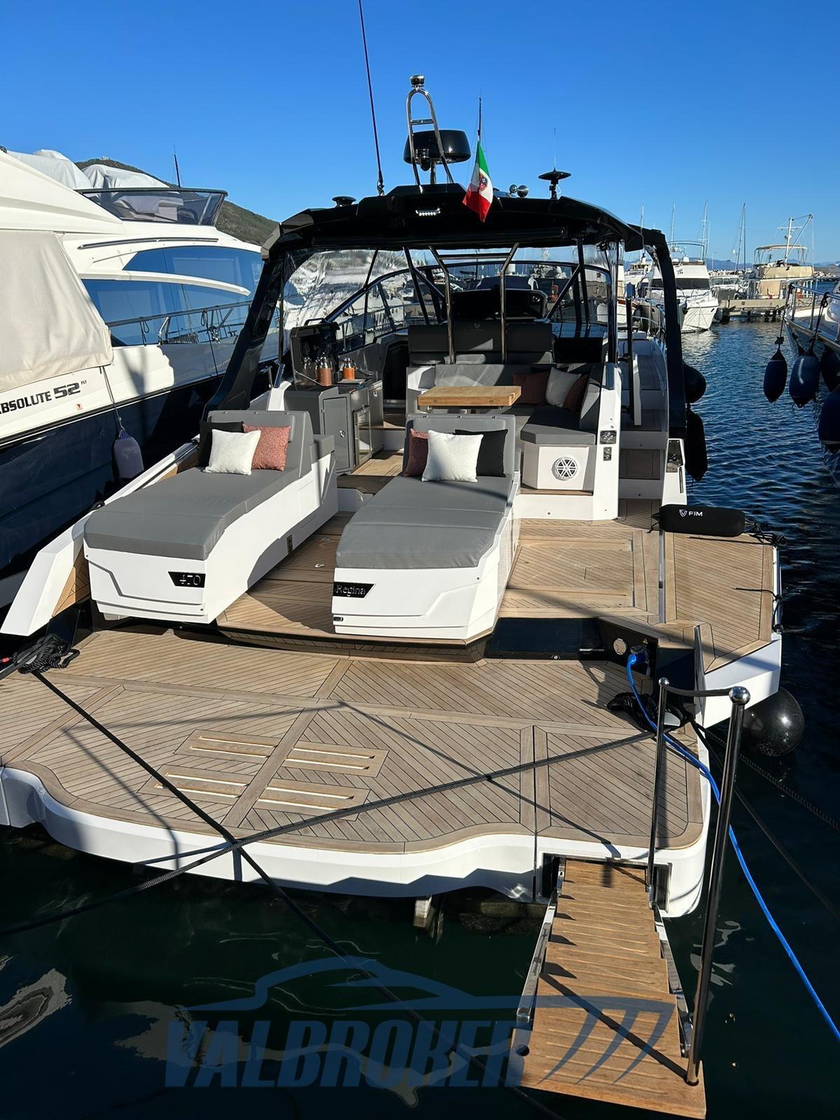 FIM Regina 470 uno yacht unico e innovativo MADE IN ITALY. Ha vinto il premio "rivelazione dell'anno" al salone nautico di Cannes 2023. BARCA DEMO. Sfrutta al massimo gli spazi all’aria aperta, grazie alle movimentazioni a poppa e a prua. Il prendisole di prua, traslando lateralmente, crea una vera e propria zona convivale a prua. Il salotto di poppa garantisce grande versatilità, grazie alla possibilità di configurare in diversi modi la dinette esterna.Il pozzetto di poppa può ampliarsi attraverso un meccanismo di divisione del prendisole: si sviluppa così una spaziosa area centrale, che assicura la massima vivibilità.