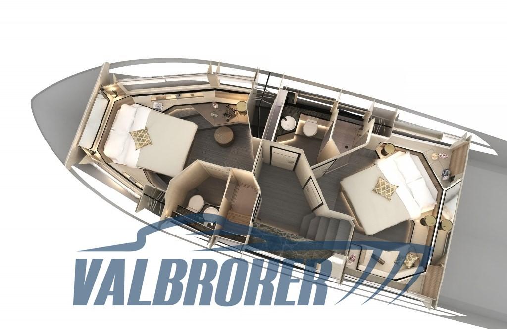 Aria condizionata (cabine e cucina), Boiler (elettrico/bivalente), Controllo Domotica, Pavimento interno in legno, 2 Telecamera (sala macchine e poppa), 2 WC marino elettrico.