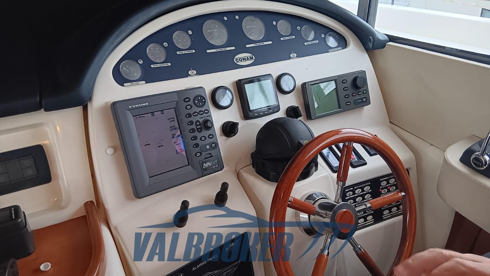 Computer di bordo (Volvo Penta), Pilota automatico (Furuno), Plotter con antenna GPS (Furuno), Radar (Furuno), Radio VHF (Furuno).
