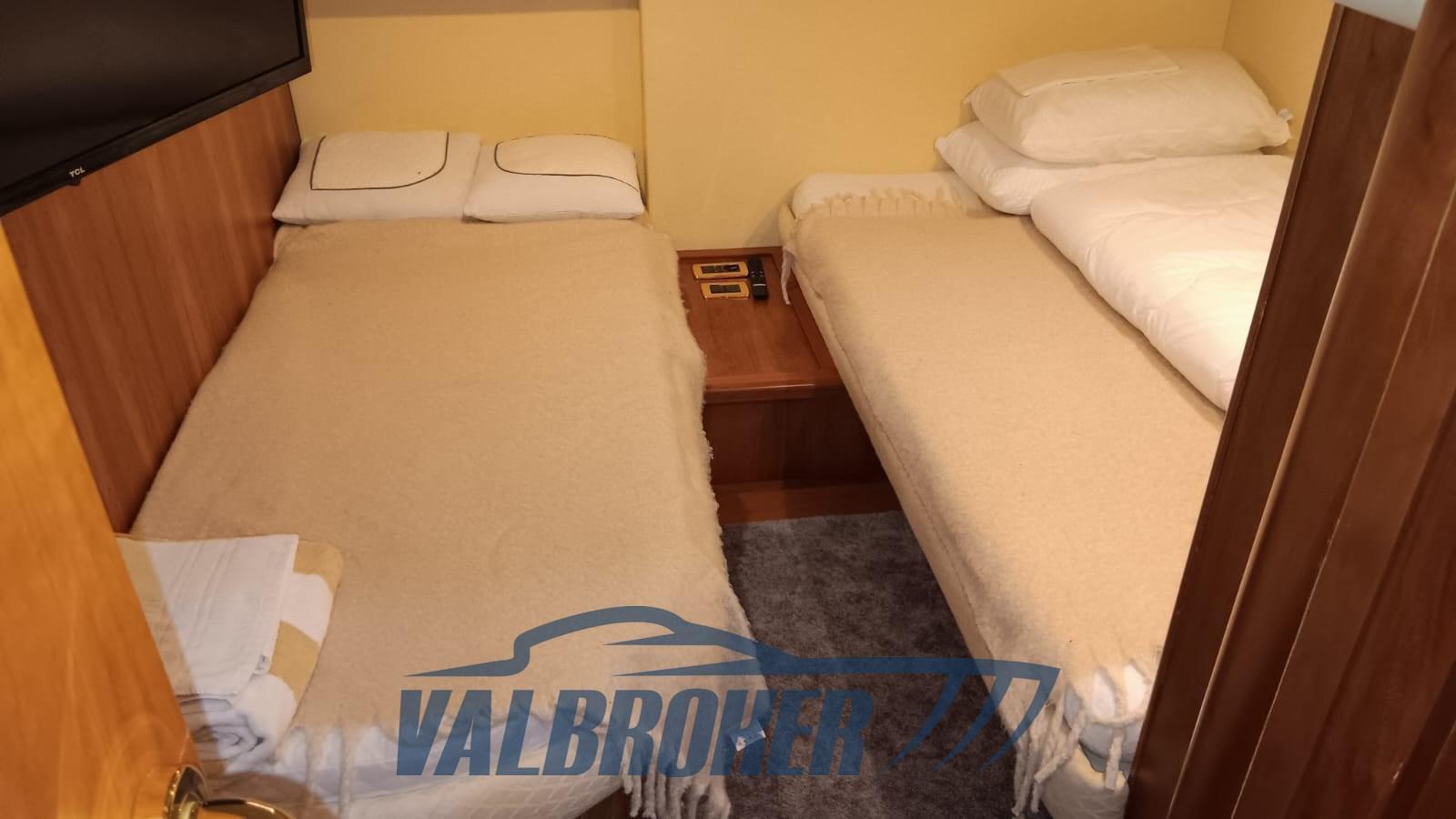 3 cabine e 3 bagni. Generatore, pavimento interno in legno, teak in pozzetto. Invaso con winch elettrico per tender. Teli nuovi per copertura fly.