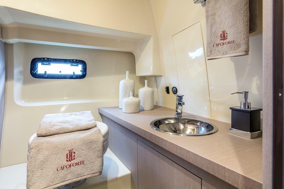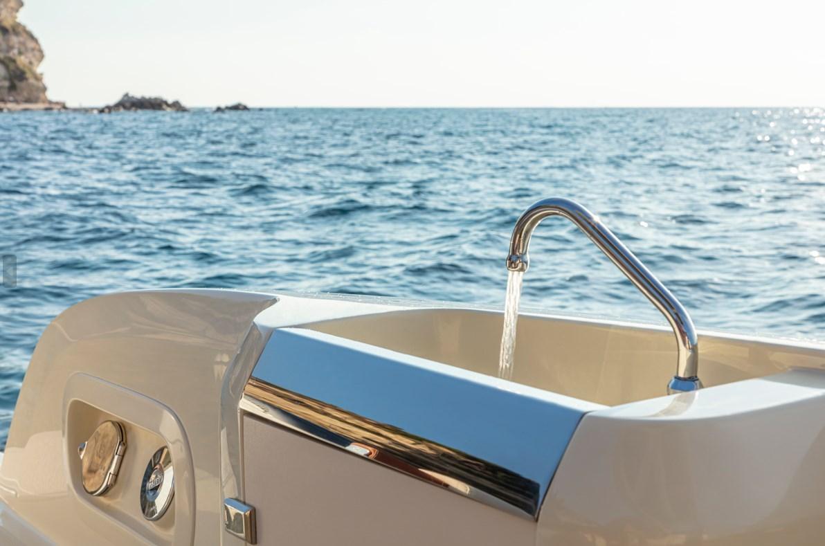 Autoclave, Cavo corrente di banchina, Flap elettrici, Indicatori Flaps, Lavandino nel Pozzetto, Luci di cortesia, Parabordi, Pompa di sentina manuale, Presa 220V banchina, Salpa Ancore Elettrico, Scaletta da bagno, Tromba.
