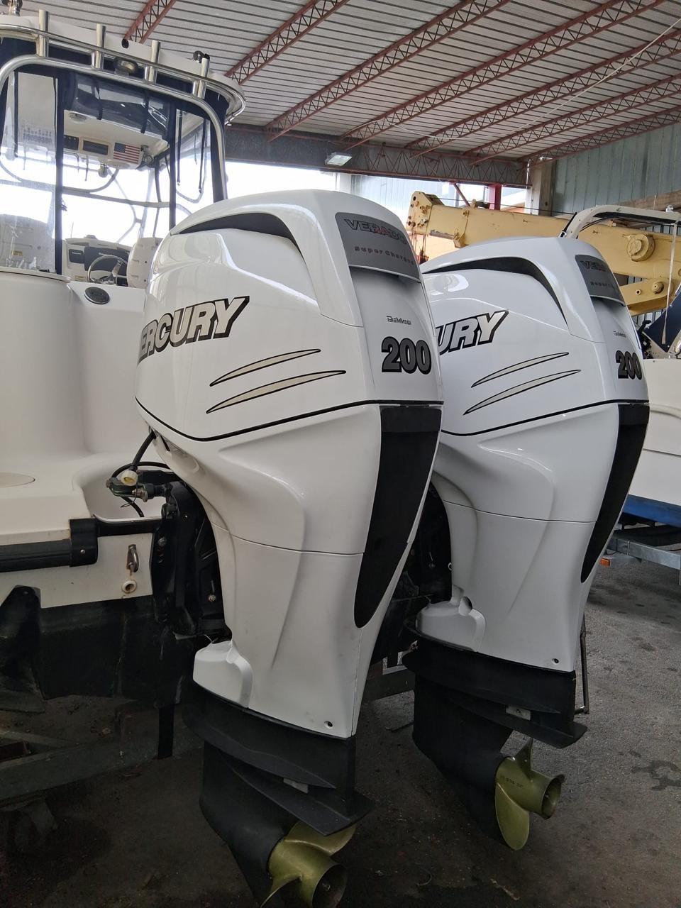 Boston 255 Conquest con due Mercury Verado del 2016 da 200hp con circa 340 ore moto completamente revisionati con un anno di garanzia . Cabina con WC elettrico a scomparsa , frigo 12/220 portatile, 11 porta canne, 2 vasche del pescato, vasca del vivo , divanetto di poppa nuovo, e altre due sedute , divergenti. Tendalini nuovi 2024 , tendalino di poppa estraibile . vericello elettrico con batteria dedita. Elettronica: radar Raymarine C27 ed autopilota Raymarine P70, GPS 8600 Garmin con sonda da profondità professionale. Prendisole di prua .Barca complea per pesca di altura. GARANZIA DI 1 ANNO SUI MOTORI . VENDITA IN ESCUSIVA
