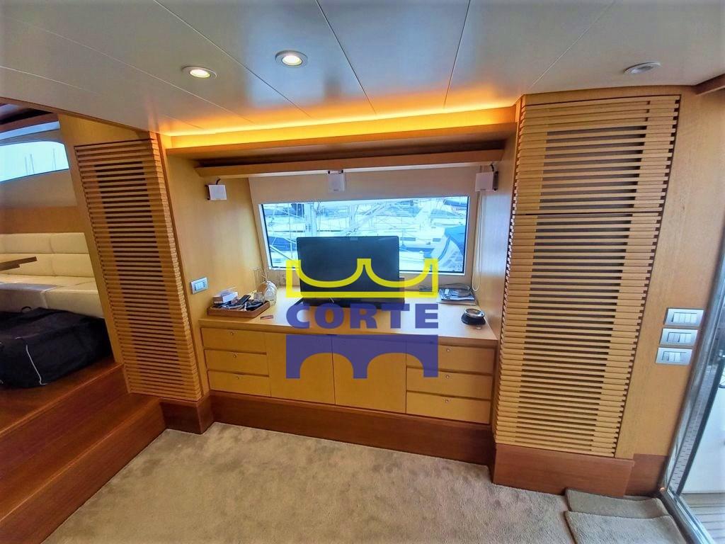 Tridata Raymarine, Raymarine C80 sul flybridge, tendalini invernali ed estivi, moquette nelle cabine nuova, plancetta idraulica a scomparsa, mobile bar fly con lavello, frigo e grill, fly in teak, tendalini invernali completi, tendalino chiusura pozzetto e flybridge recenti, impianto Apple tv,
