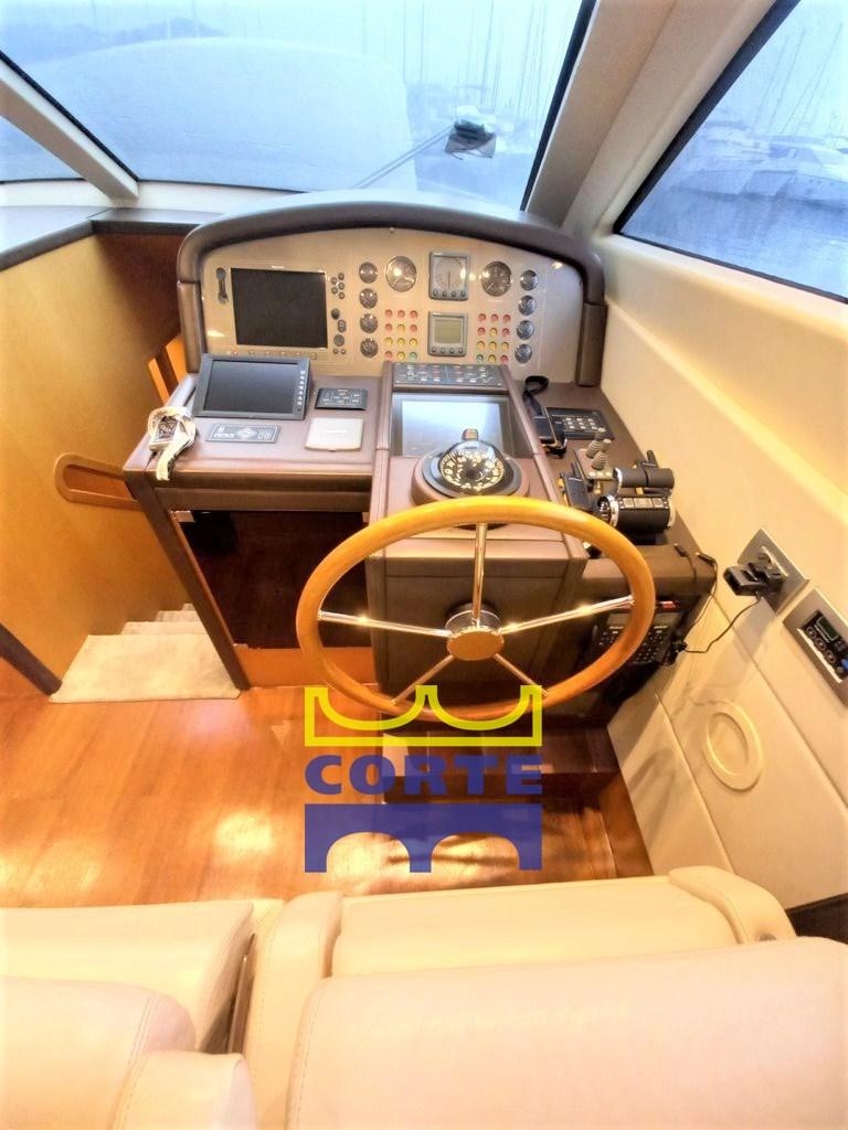 Angolo barra, Antenna radar, Comando motori elettronico, Computer di bordo, Contametri catena, Display, Ecoscandaglio (Raymarine), Monitor dei consumi, Pilota automatico (Raymarine ST6001), Plotter con antenna GPS (Raymarine), Quadro comandi, Radar (32 mg Raymarine), Radio VHF (Raymarine RAY240E), Sedile Copilota, Yacht controller.