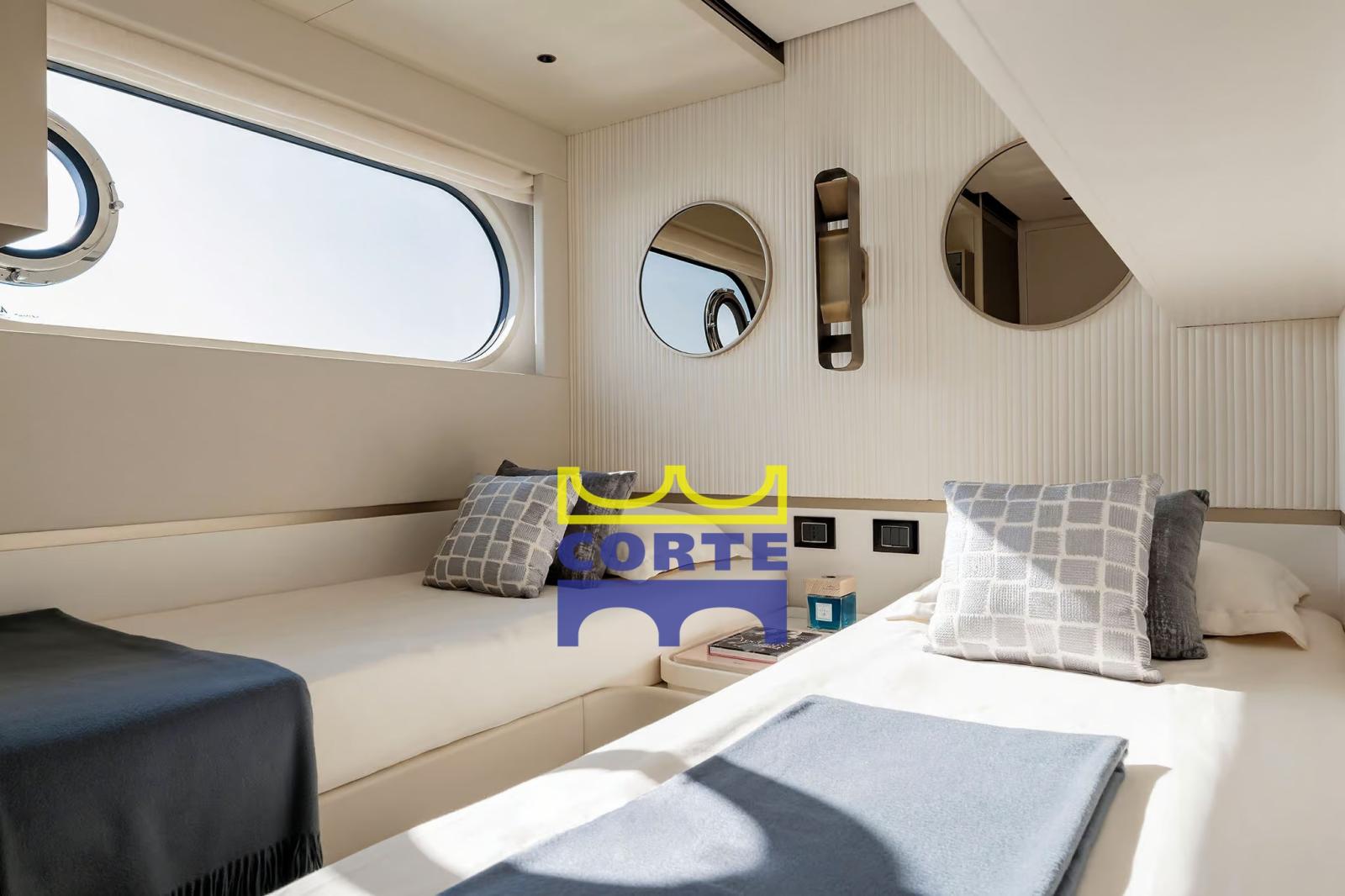 4 cabine, 4 bagni, day toilet, 2 cabine equipaggio con bagno