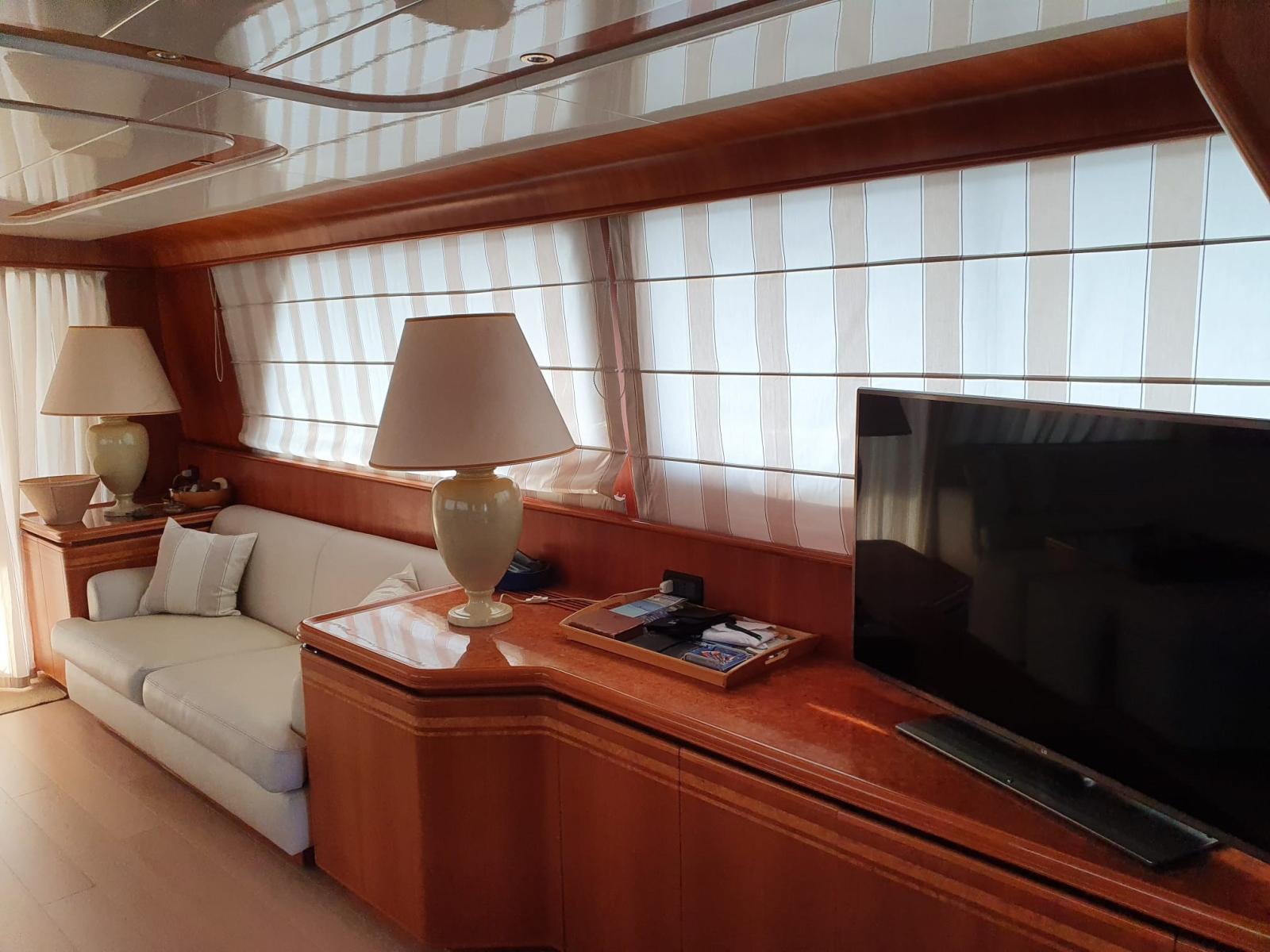 2020: verniciatura completa dello scafo e della sovrastruttura - nuovo teak 15 mm - nuova cuscineria esterna, divani fly, testiere letti, tende e moquette - sostituzione dei tonneggi di poppa nuovi e revisione verricello salpancora - revisione dissalaltore.