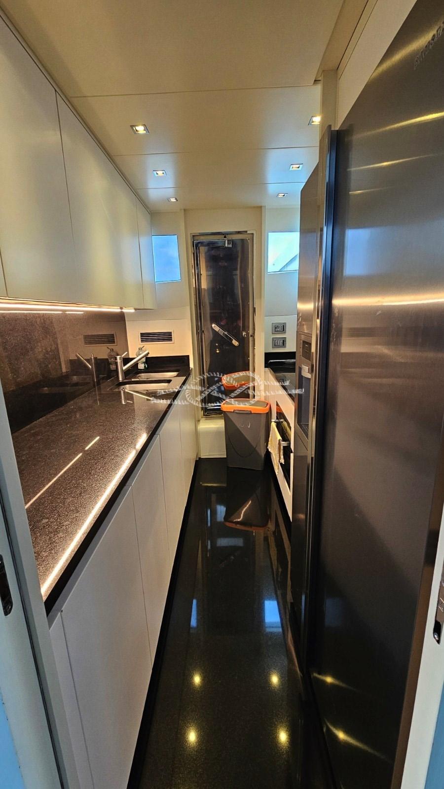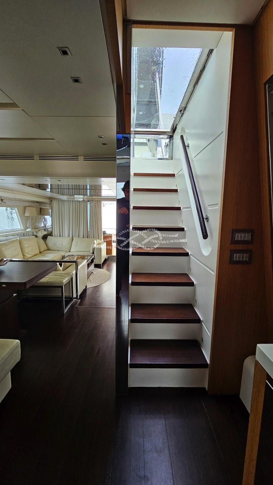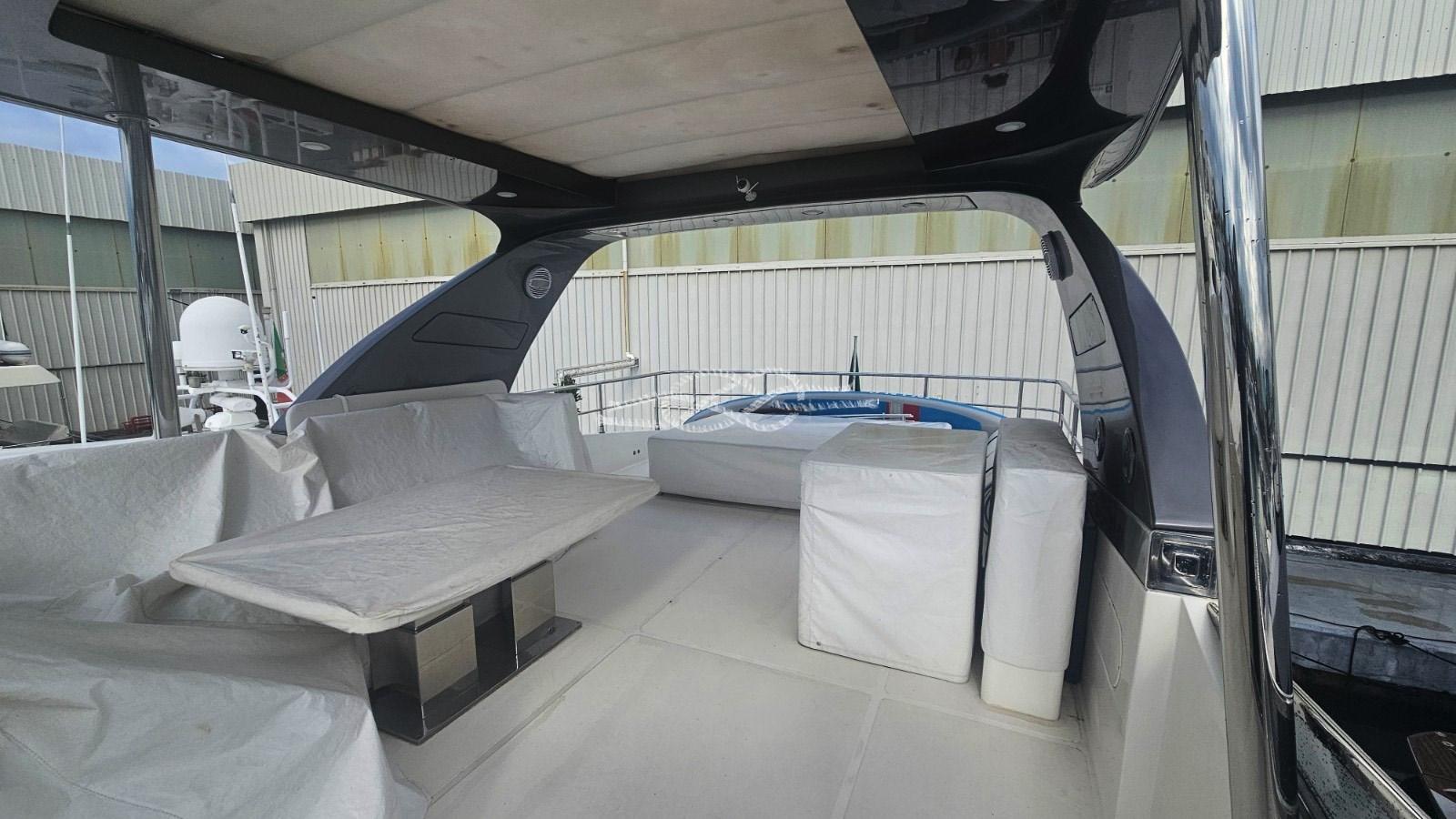 Elica di prua e di poppa elettriche - pedana di poppa tender lift - T-top con tendalino apribile sul flying bridge - terza stazione di comando a poppa - aria condizionata Frigomar - gruppi elettrogeni Kohler 2 x 20 kW - antenna TV SAT - TV LCD (in tutte le cabine, a scomparsa in salone) - frigo doppio in salone - frigo/freezer - piano cottura induzione 4 fuochi Miele - lavastoviglie Siemens - lavatrice - forno - domotica controllo utenze, livelli, impianti di bordo - tender jet - mobile bar sul fly con lavello e frigo - TV a scomparsa sul fly.