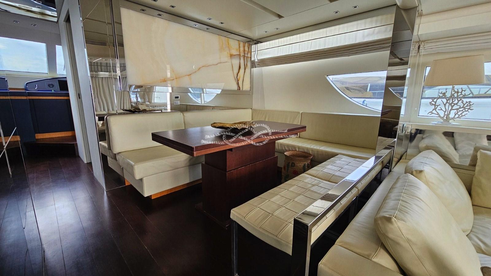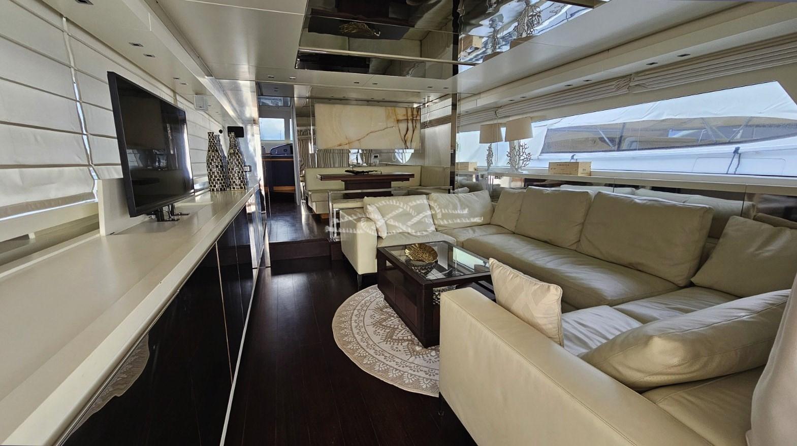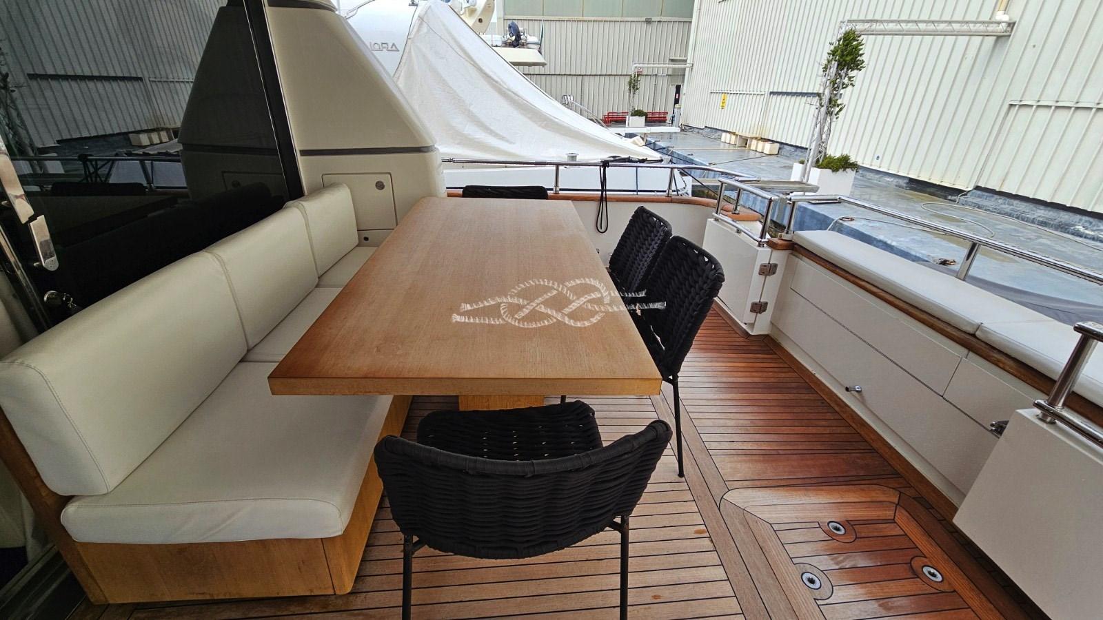Elica di prua e di poppa elettriche - pedana di poppa tender lift - T-top con tendalino apribile sul flying bridge - terza stazione di comando a poppa - aria condizionata Frigomar - gruppi elettrogeni Kohler 2 x 20 kW - antenna TV SAT - TV LCD (in tutte le cabine, a scomparsa in salone) - frigo doppio in salone - frigo/freezer - piano cottura induzione 4 fuochi Miele - lavastoviglie Siemens - lavatrice - forno - domotica controllo utenze, livelli, impianti di bordo - tender jet - mobile bar sul fly con lavello e frigo - TV a scomparsa sul fly.