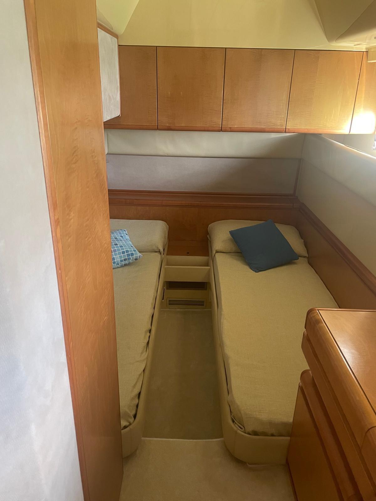 Cabina armatoriale con letto matrimoniale e bagno - cabina ospiti con due letti in piano trasformabile in matrimoniale e bagno - cabina ospiti con due letti in piano e bagno.