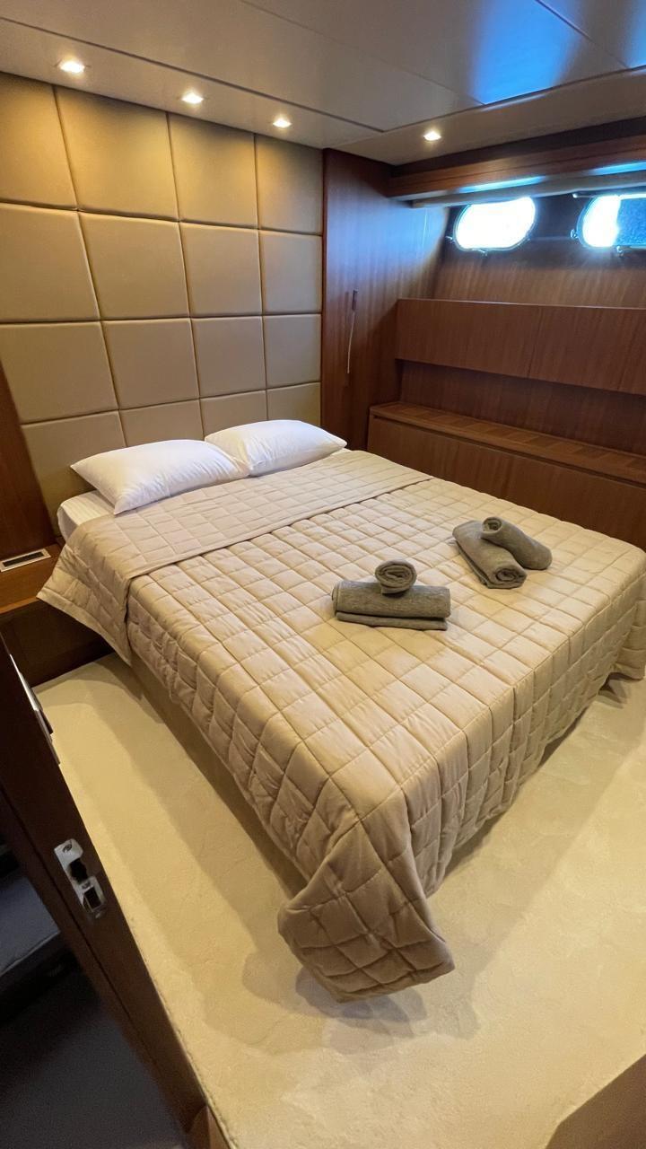 Cabina armatoriale con letto matrimoniale, cabina armadio e bagno - cabina Vip con letto matrimoniale e bagno - cabina ospiti con letto alla francese e bagno - cabina ospiti con due letti in piano e bagno.