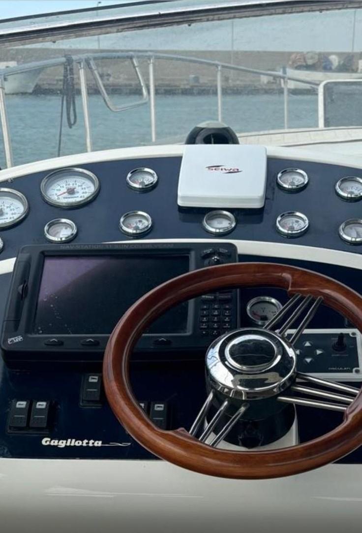 Passarella elettro idraulica rotante - gruppo elettrogeno Paguro 3 kW - tendalino con struttura fissa - antenna TV - TV LCD - cucina con lavello, frigo inox e microonde - frigo in pozzetto - elica di prua.