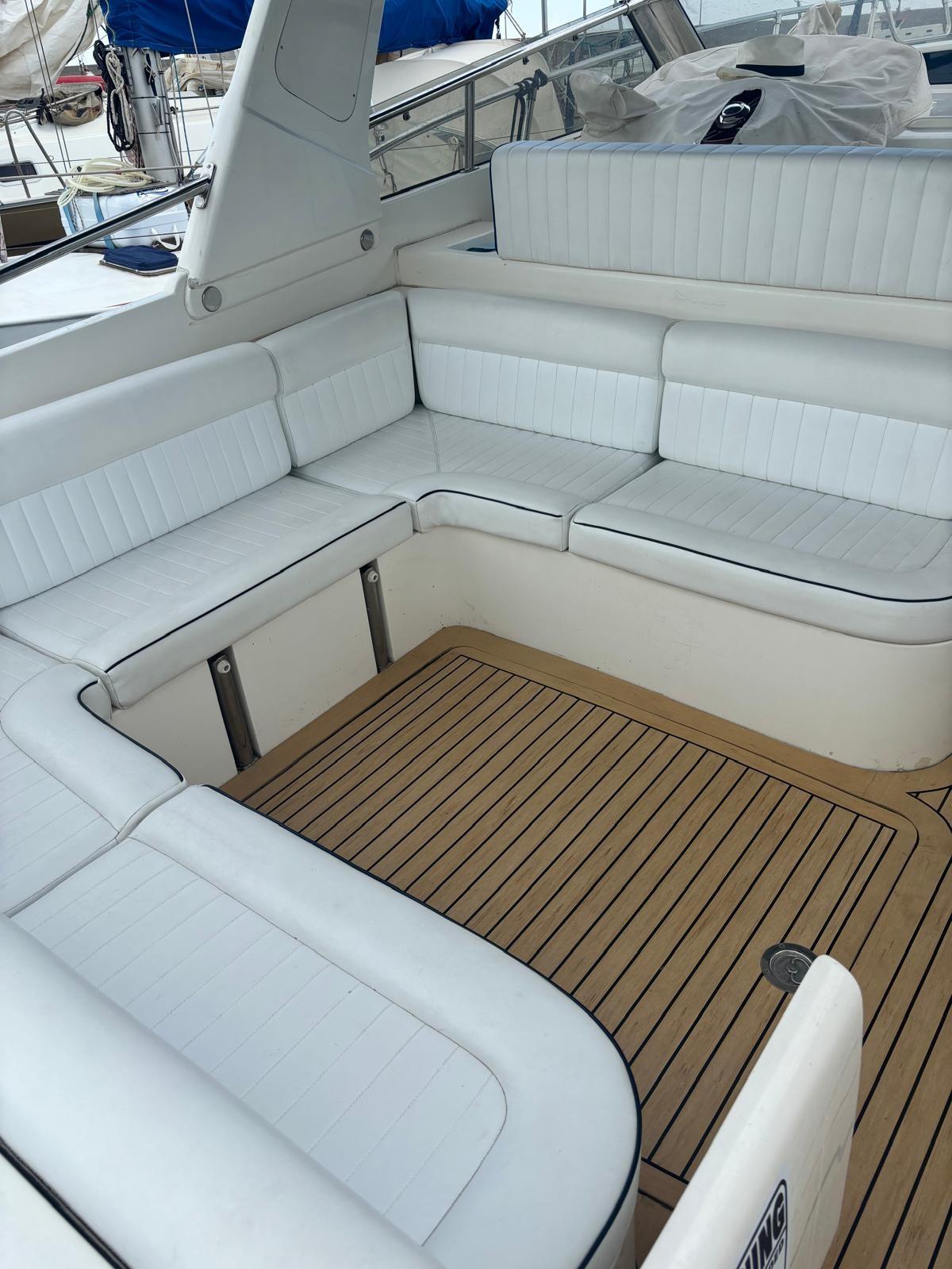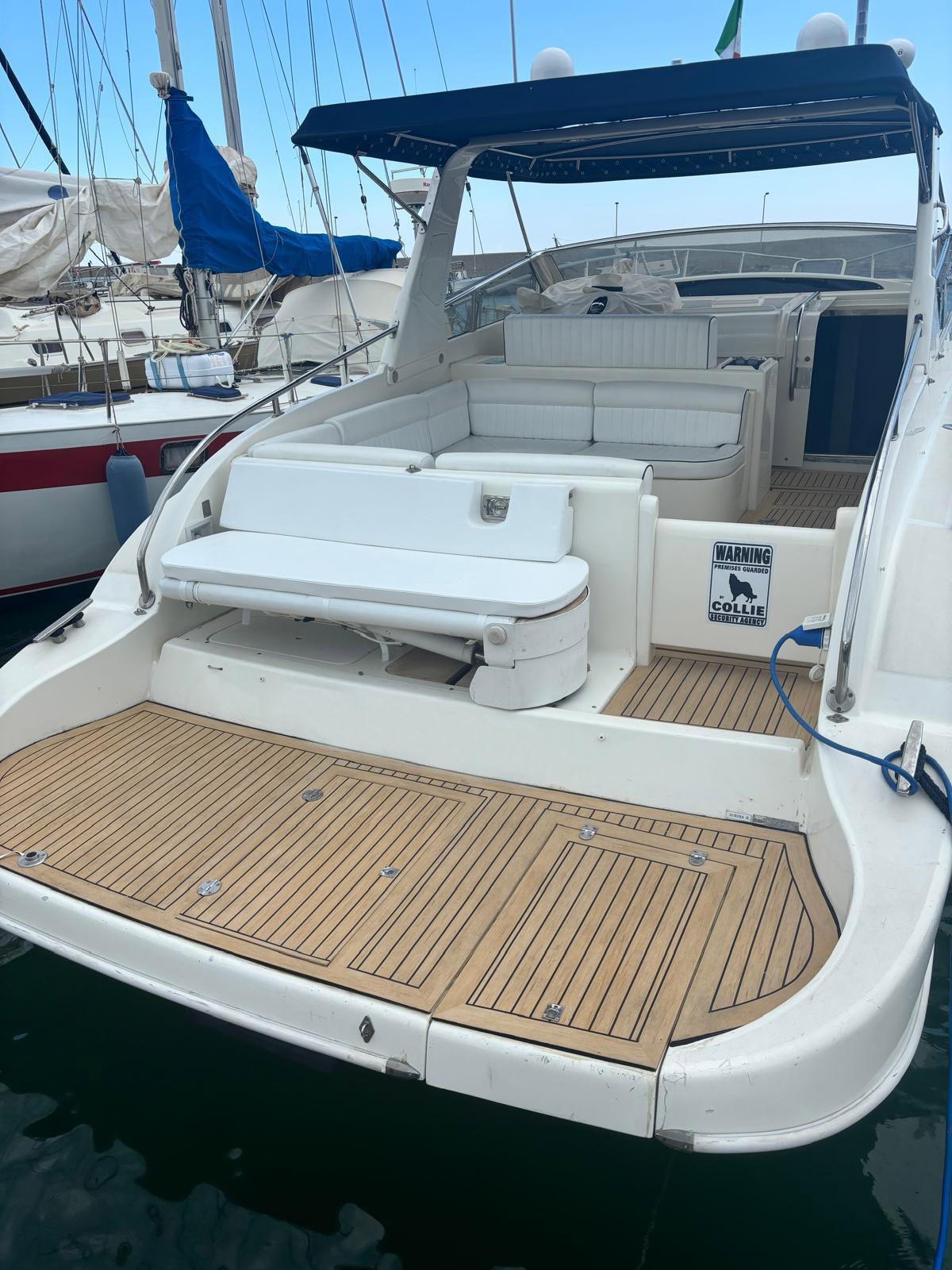 smontaggio e revisione piedi poppieri Mercruiser 3X (cuffie, olio, zinchi) - revisione delle pompe trim con sostituzione teleruttori elettrici - istallazione n. 6 luci subacquee blu - sostituzione trasduttore ecoscandaglio - revisione passerella idraulica (sostituzione tubi olio e pulsantiera nuova) - realizzazione cuscini nuovi per passerella (uso divano) - scritta di poppa in acciaio inox retroilluminato blu - manutenzione straordinaria motori Yanmar con sostituzione sensori pressione olio e zinchi interni, cambio olio e filtri - sostituzione filtri Racor - istallazione supporto motore ausiliario tender nel vano motore - smontaggio e sbarco generatore Paguro 3000 per manutenzione straordinaria - sostituzione cavi manette - nuovo frigo pozzetto - sostituzione batterie motori e servizi - sostituzione autoclave - nuovo sin-teak per pozzetto e pedana di poppa - nuovo forno microonde - nuovo tendalino rigido collegato al roll bar (anteriore e posteriore) - lucidatura murate - montaggio elica di prua.