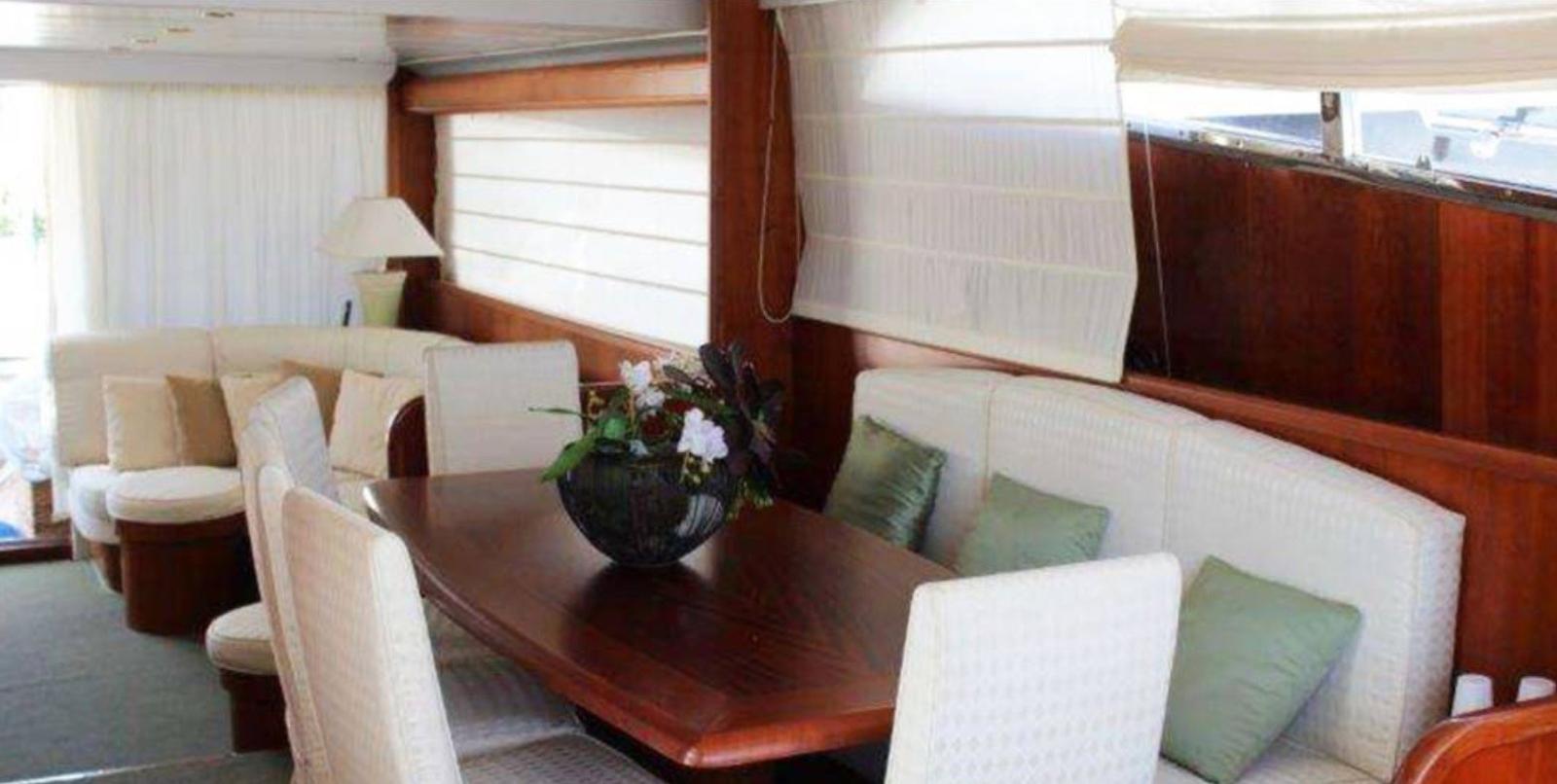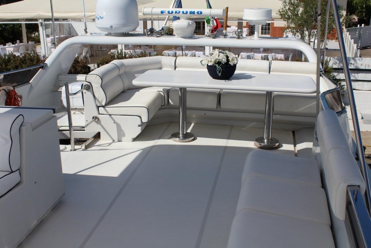 Allarme motore, Autoclave, Camminamenti laterali in teak, Doccia esterna, Flap idraulici, Gruette per tender, Impianto antincendio, Luci di cortesia, Passerella, Piattaforma, Porta ingresso, Porta laterale, Pozzetto Teak, Presa 220V banchina, Presa acqua banchina, Salpa Ancore Elettrico, Scaletta da bagno, Selle per Tender, Tavolo pozzetto, Winch tonneggio di poppa.