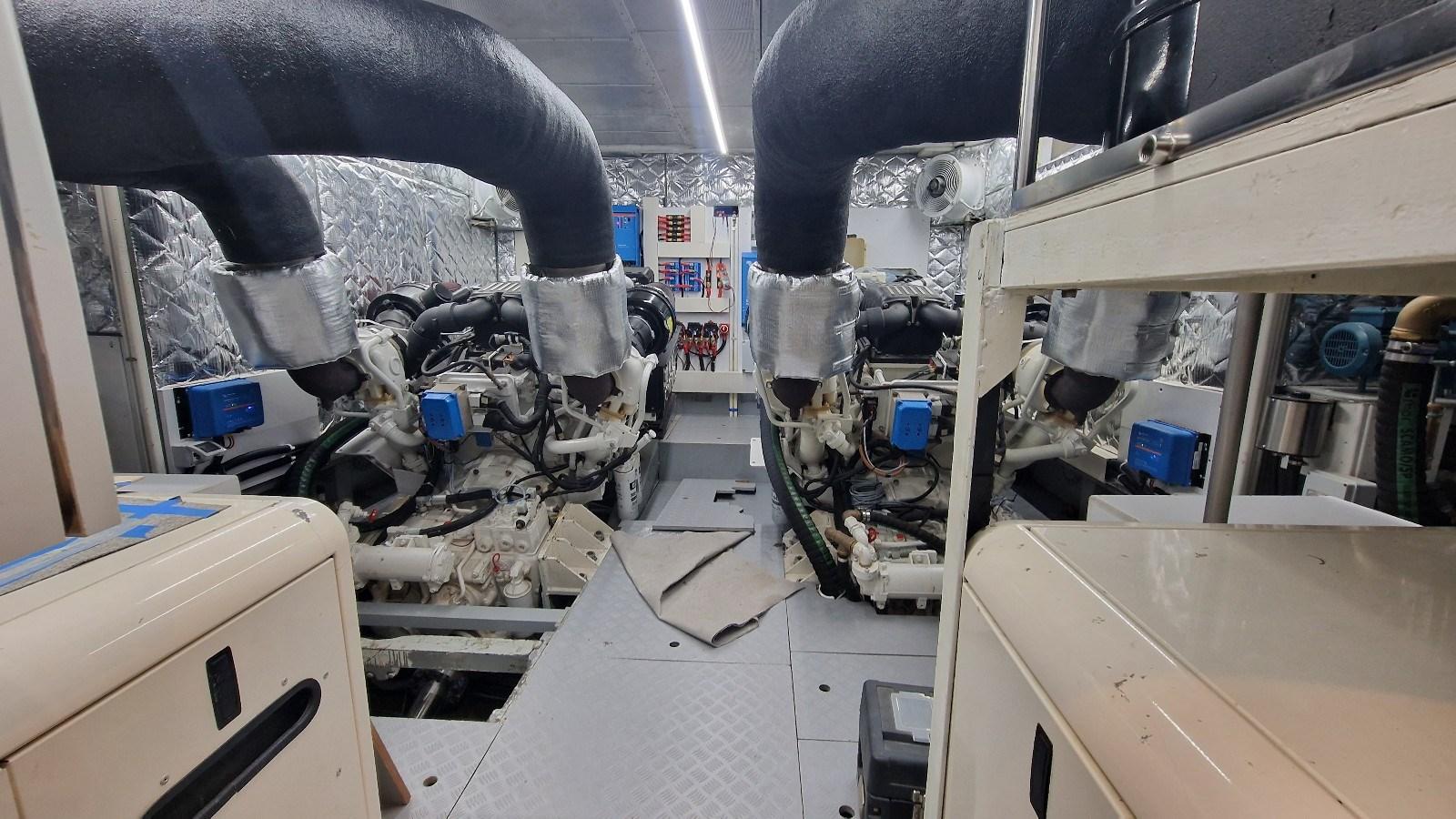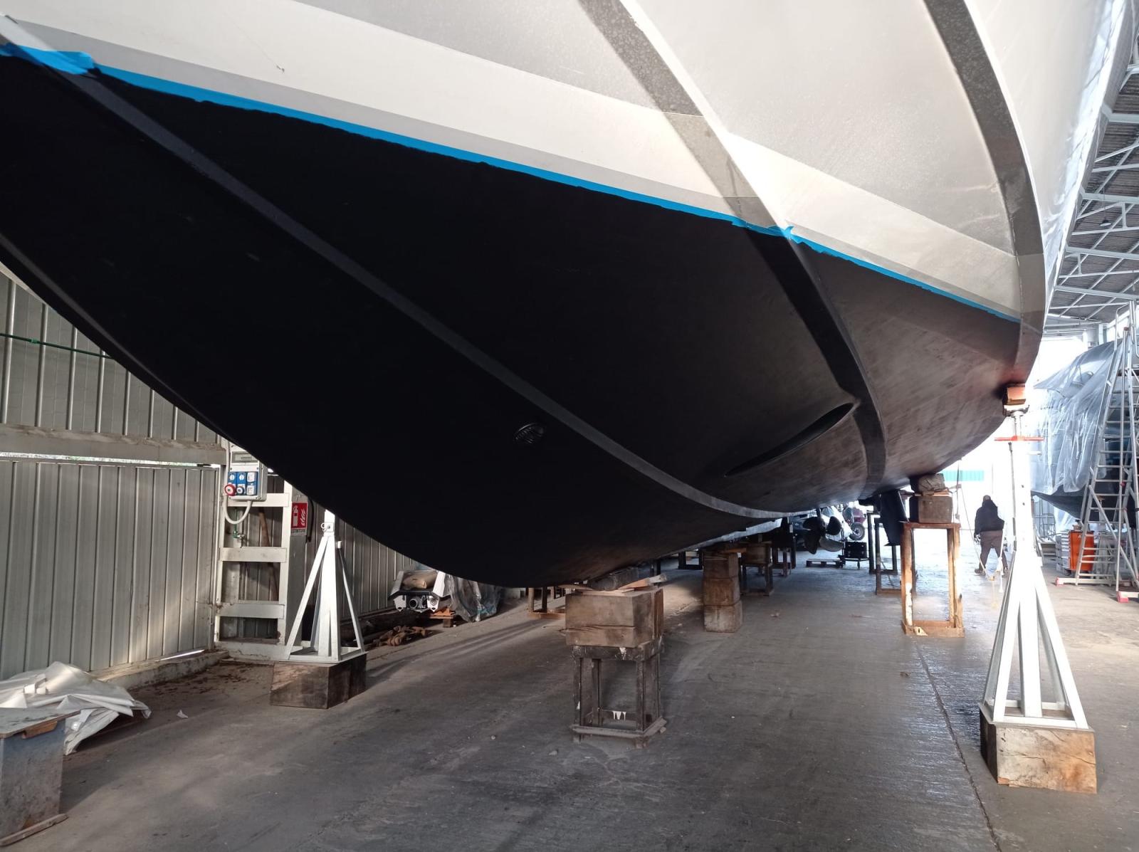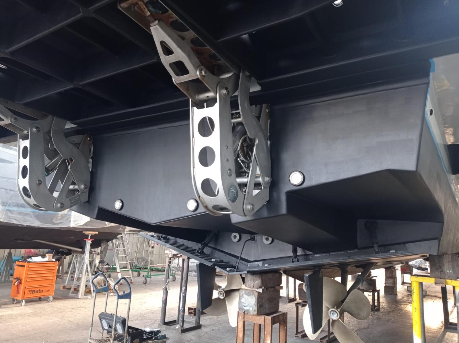 Imbarcazione che ha appena terminato un refit totale (verniciatura, impianto elettrico, carena a zero, sostituzione motori con n. 2 CAT da 1.670 hp ciascuno, pinne stabilizzatrici, tender lift con pedana di poppa maggiorata, poppa ricostruita con scale, ecc).