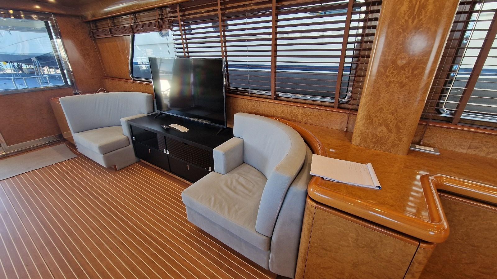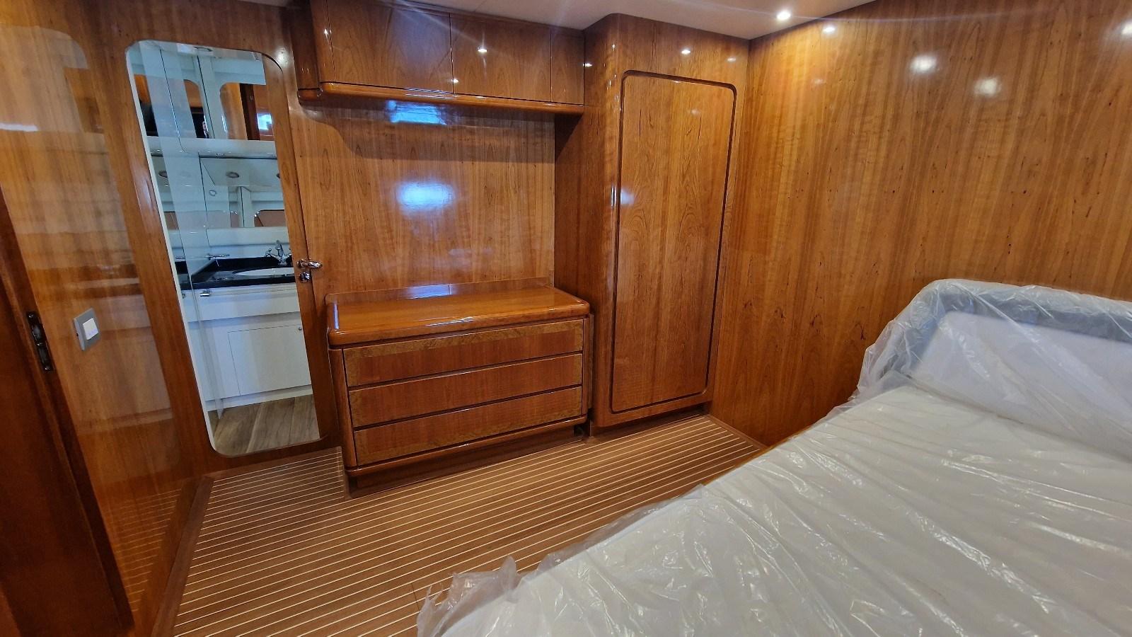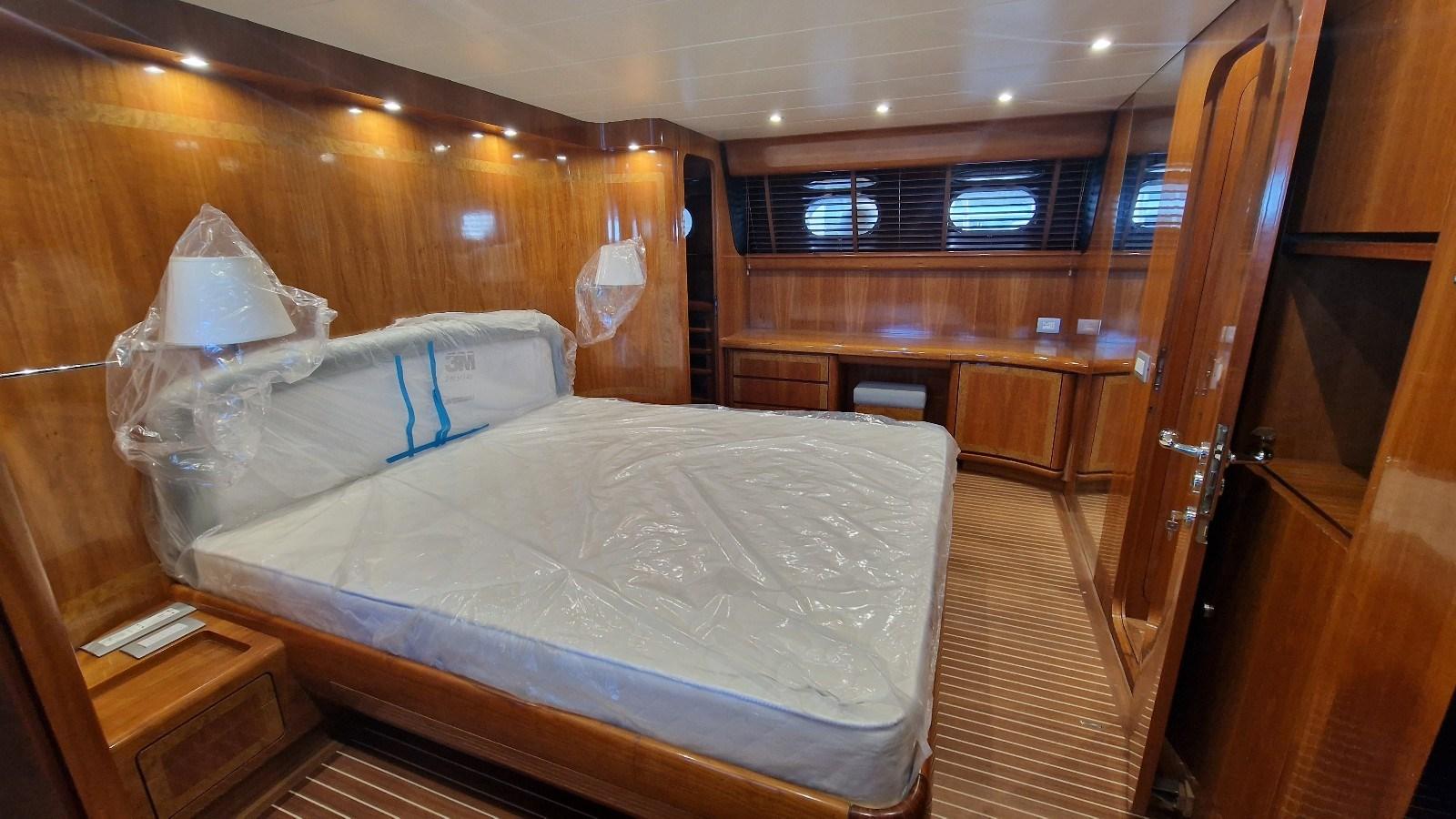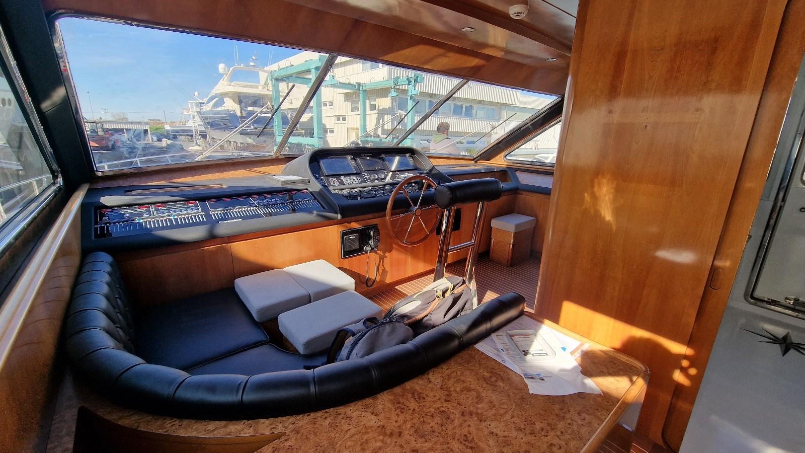 Imbarcazione che ha appena terminato un refit totale (verniciatura, impianto elettrico, carena a zero, sostituzione motori con n. 2 CAT da 1.670 hp ciascuno, pinne stabilizzatrici, tender lift con pedana di poppa maggiorata, poppa ricostruita con scale, ecc).