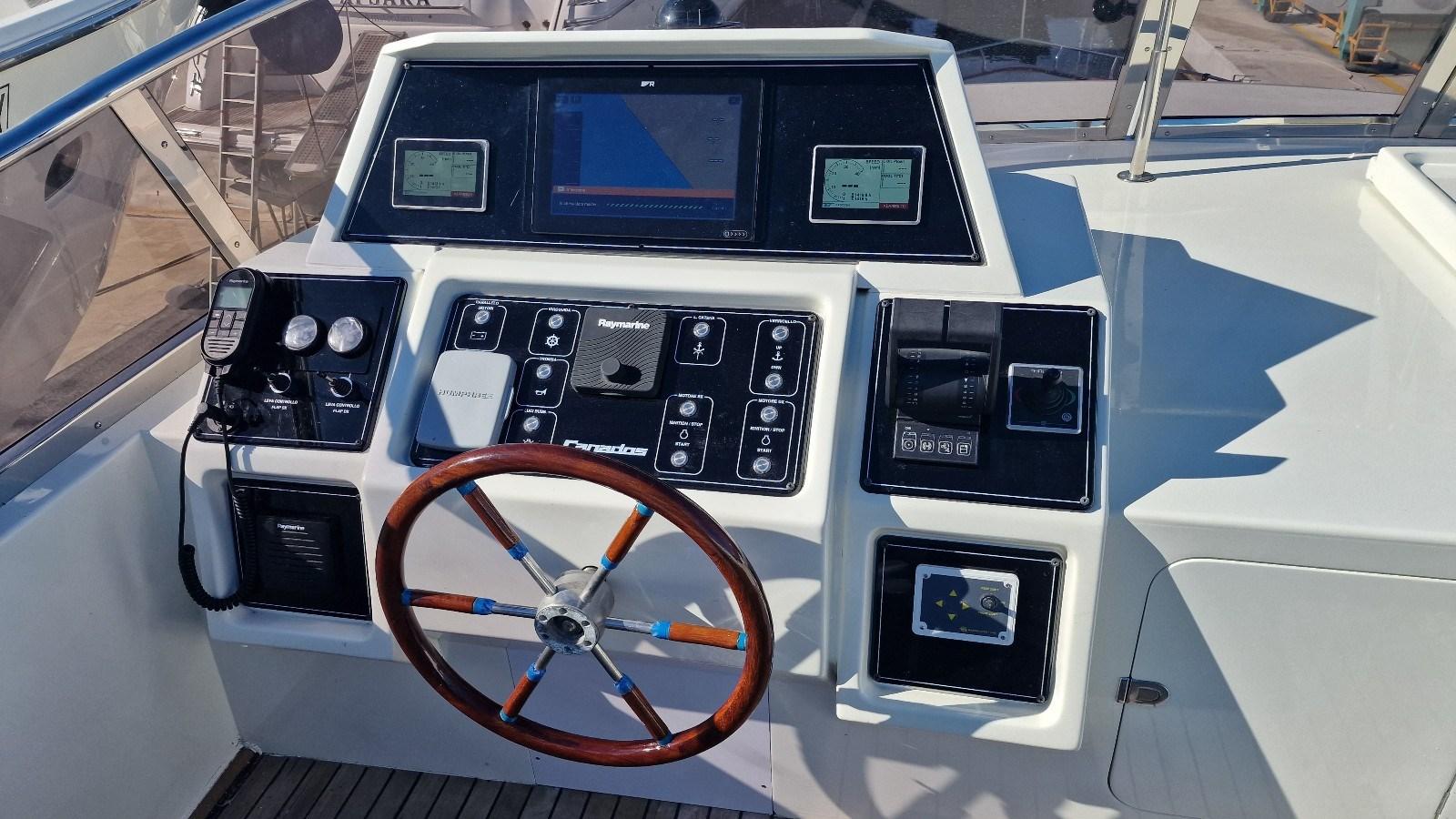 pinne stabilizzatrici Humphree - pedana di poppa idraulica portata 2500 kg - impianto elettrico nuovo - revisione generale dell'impianto idraulico con bagni acqua dolce Planus - idrotenute Rexmar - bow thruster elettrico Quick Marine - aria condizionata - frigoriferi - congelatore - ice maker - antenna satellitare tv - piano cottura ad induzione 5 fuochi - forno - lavastoviglie - 2 generatori Kohler da 21 kw - scarichi sommersi - mobile bar su fly - lavatrice asciugatrice - dissalatore Selmar 170lt/h - verricello salpa ancora Orvea 3500w nuovo.