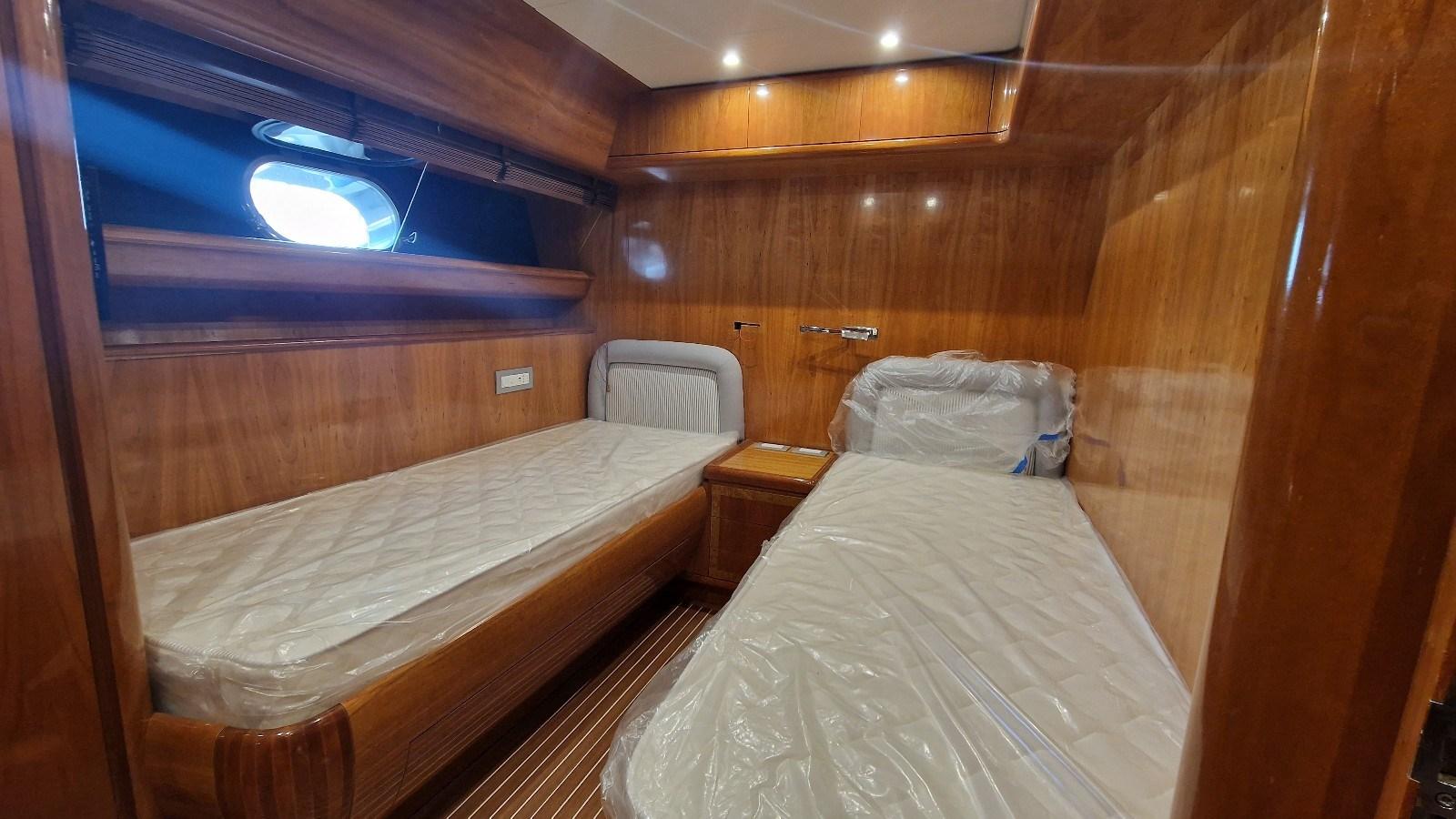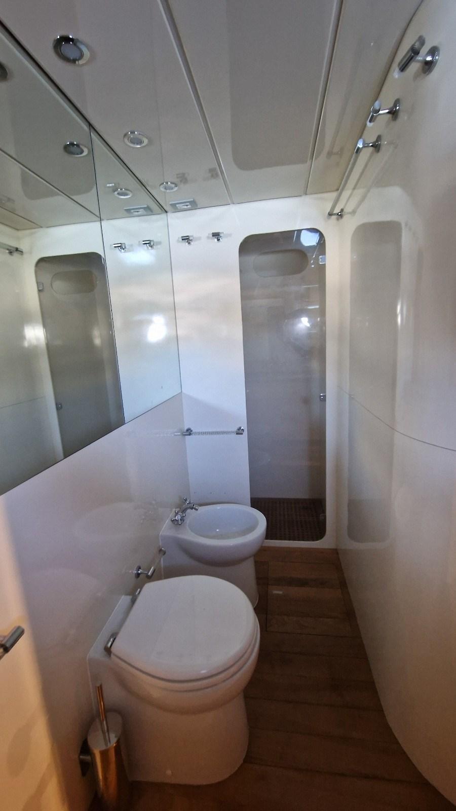 Alloggio equipaggio a prua con due letti in piano e bagno - cabina equipaggio singola a poppa con bagno.