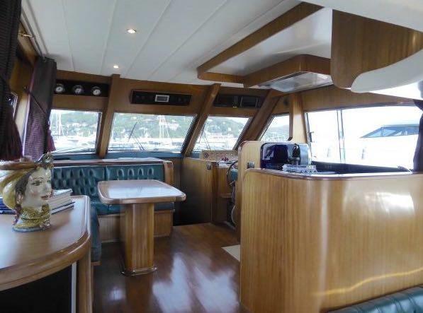 Ampia zona salone con divani in pelle - zona pranzo con cucina - timoneria interna e sul fly - ampio pozzetto.