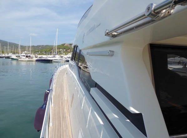 Lavori 2019/2020: cambio batterie - gommatura della coperta - rifacimento coperta di teak del flying e della plancia di poppa - revisione elica di prua con sostituzione delle batterie dedicate - sbarco generatore per revisione straordinaria - istallazione secondo fancoil nel salone.
