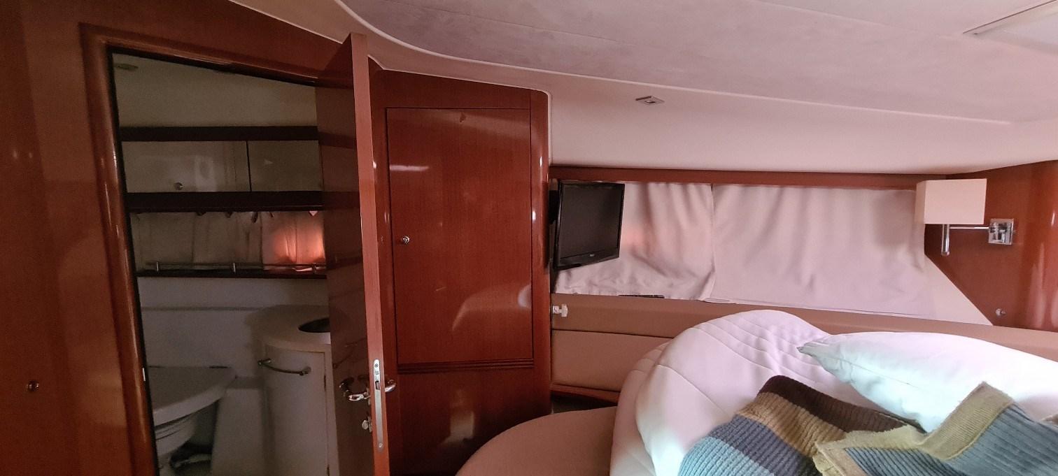 Cabina armatoriale con letto matrimoniale e bagno - cabina ospiti con due letti in piano (trasformabile in matrimoniale) - bagno ospiti.