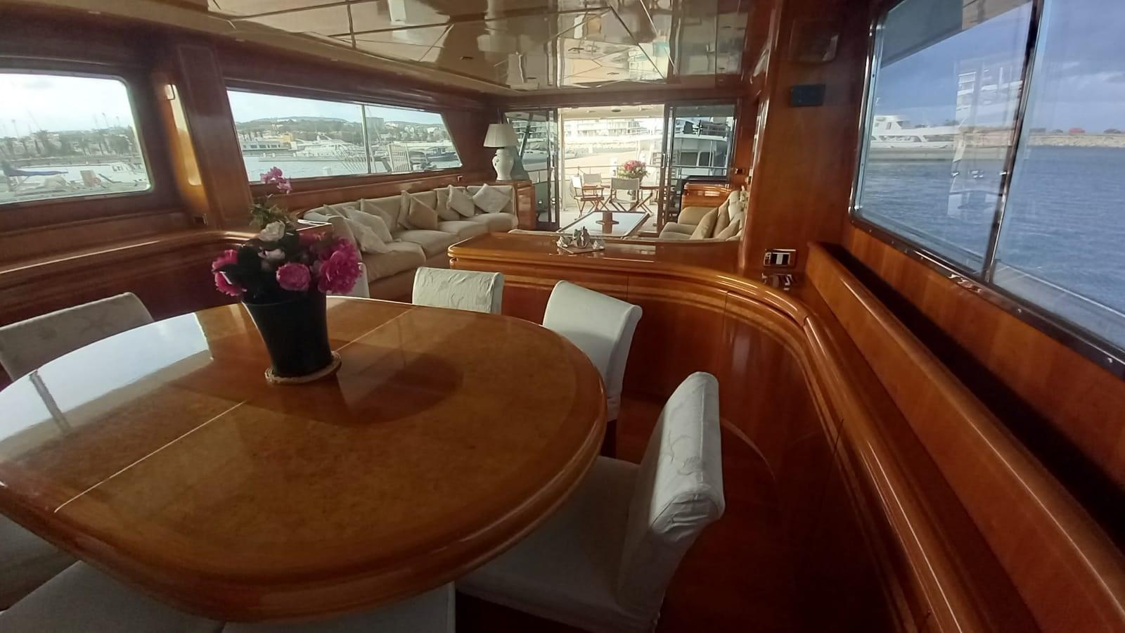 Lavori 2022 - 2023: rifacimento teak flying bridge - rifacimento divani flying bridge - nuove tappezzerie esterne Sunbrella e spugne copri cuscini - nuova moquette - nuove tende - rifacimento sportelli cucina - nuovi elettrodomestici cucina (piano cottura, forno, frigo, cappa, lavastoviglie) - manutenzione ordinaria motori e gruppi elettrogeni - nuove batterie servizi e motori - nuove batterie elica di prua - nuovi interruttori luci interne ed esterne - revisione pistoni flap - nuove luci LED subacquee - revisione passerella con sostituzione scheda, pompa e sensori.