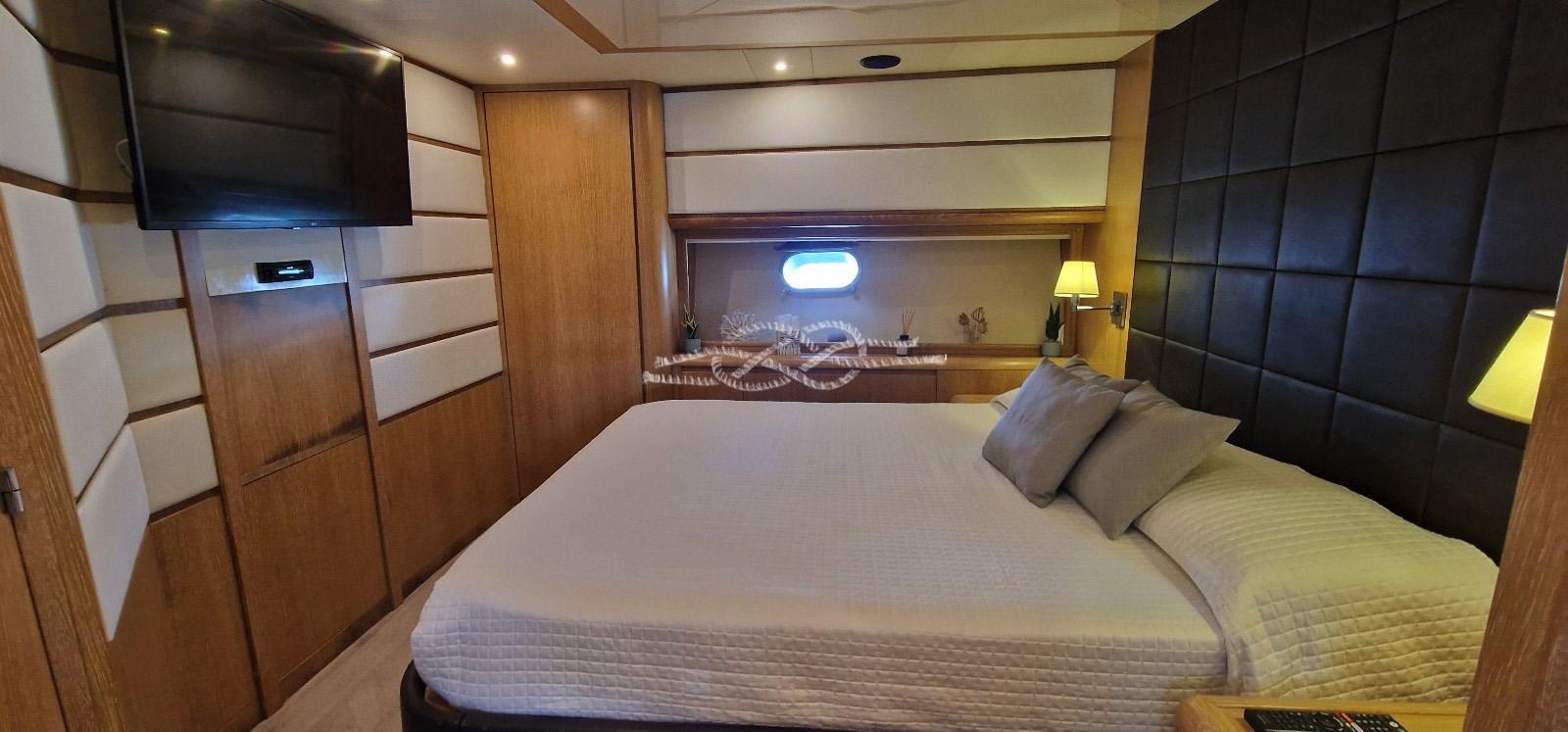 2017/18: tagliando motori e generatori - pulizia scambiatori di calore - alternatori - sostituzione di tutte le prese a mare - revisione carica batterie - revisione autoclavi - revisione aria condizionata - revisione estintori e pompa antincendio - istallazione pompe sentina automatiche - revisione generatori - revisione dissalatore - luci di cortesia LED - istallazione faretti subacquei - istallazione scritta di poppa retroilluminata LED - lucidatura murate, poppa e sovrastruttura - sistemazione bottazzo - sostituzione frigo cucina - sostituzione top marmo cucina - interfono in tutte le cabine - nuove TV LCD in salone e tutte le cabine - sostituzione di tutte le valvole WC - sostituzione plexiglas parabrezza fly - rivestimento divani salone in pelle - istallazione depuratore acqua e gas - impianto stereo Alpine - sostituzione elettronica plancia e fly - riverniciatura cruscotto fly - revisione zattera - sostituzione materassi - sostituzione tende cabine - sostituzione lavatrice - istallazione cancelletti inox e plexiglass su scale di poppa.
