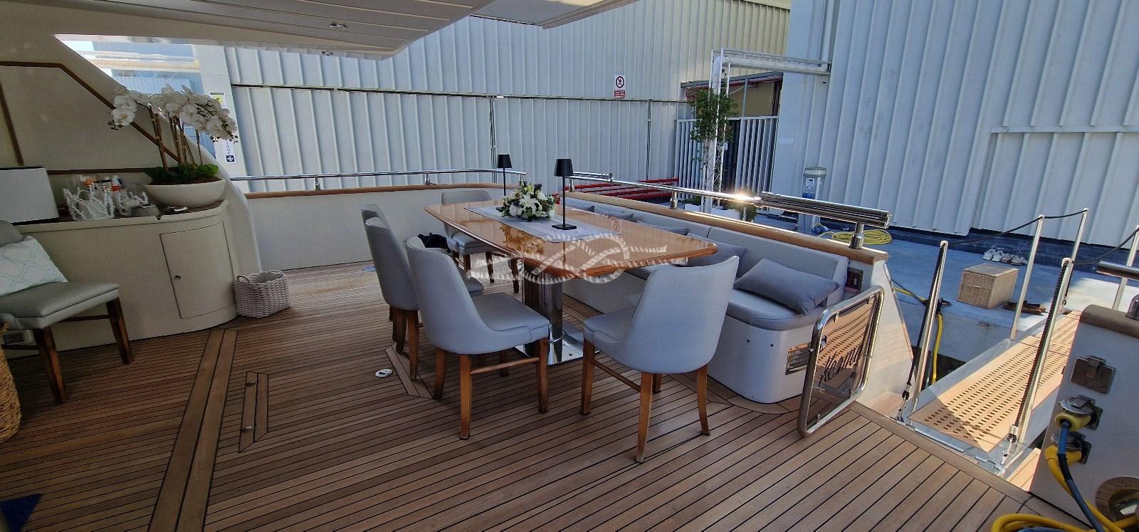 2020-2021: rifacimento completo del teak del ponte di coperta e del flying bridge - rifacimento di tutte le tappezzerie interne ed esterne - lucidatura completa dell'imbarcazione - rettifica linea d'asse (assi, eliche) - sostituzione boccole cavalletti - nuova elica di prua.