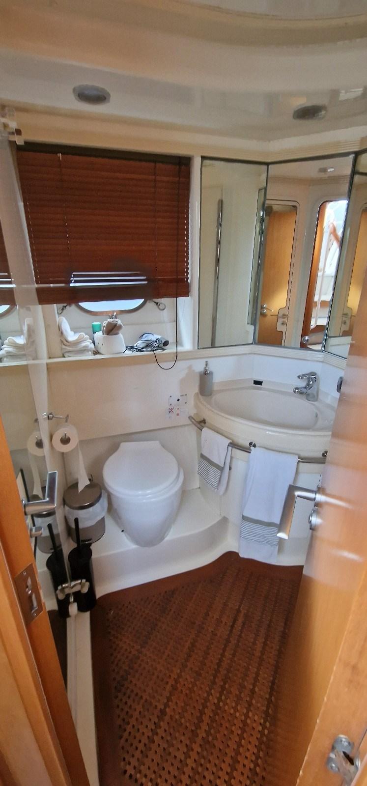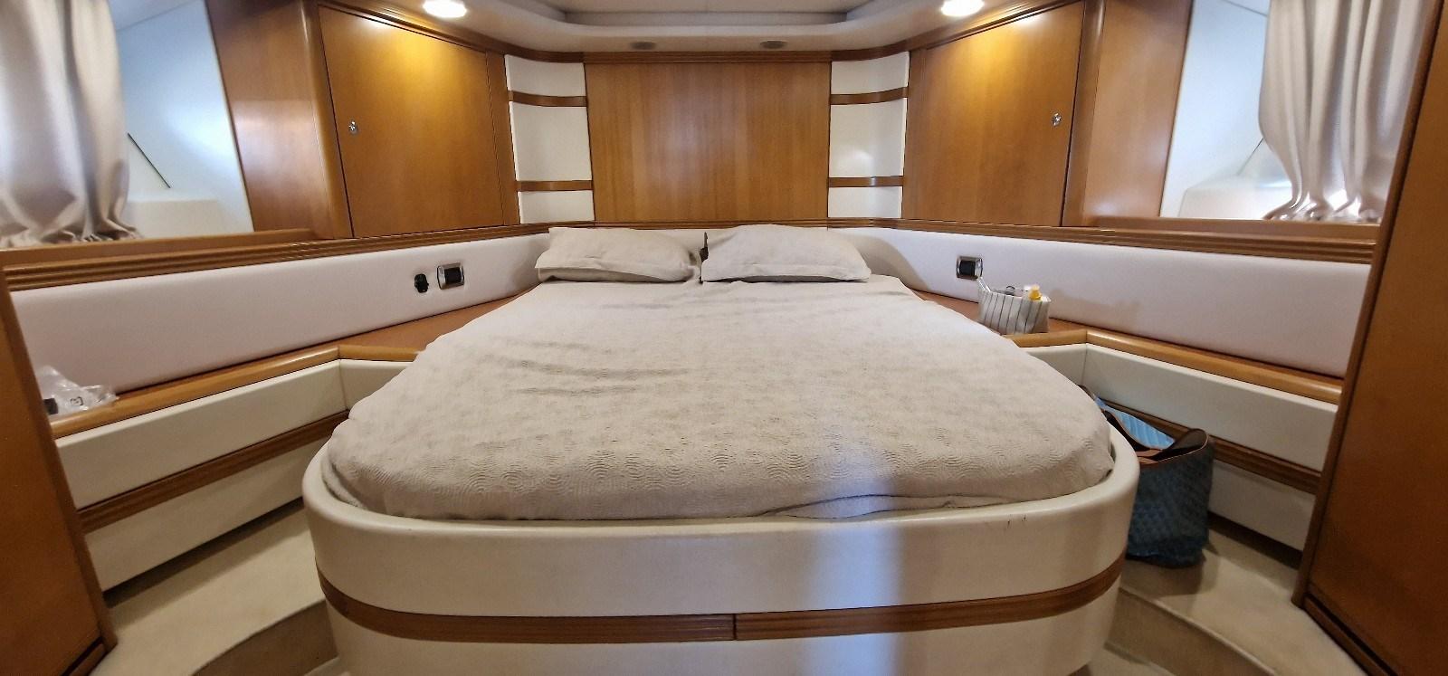 Cabina armatoriale con letto matrimoniale e bagno - cabina ospiti con due letti in piano - cabina ospiti con due letti incrociati - bagno ospiti.
