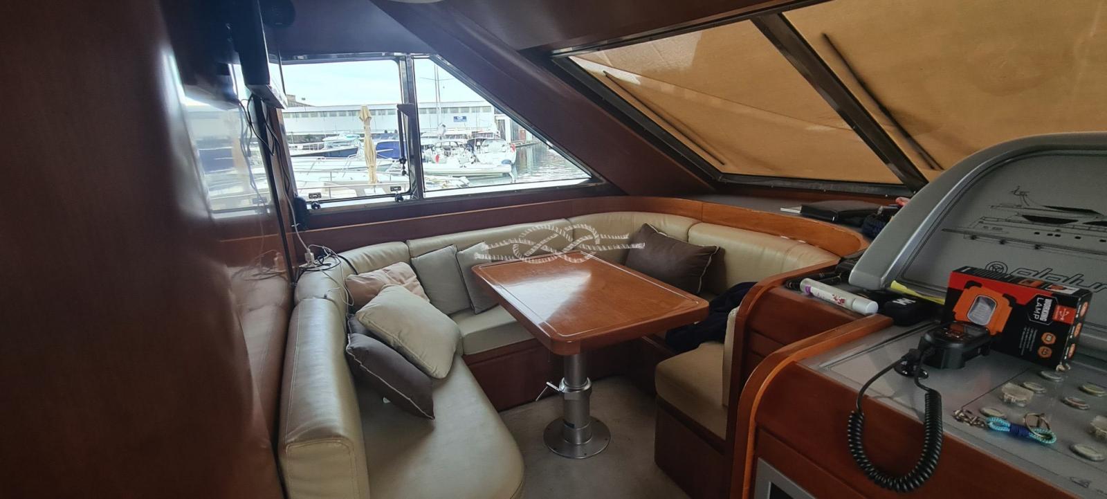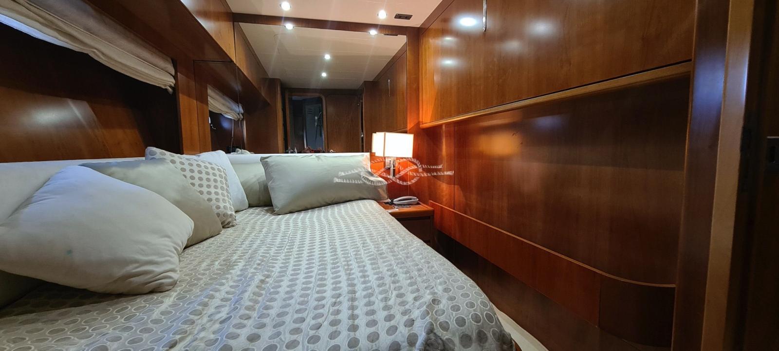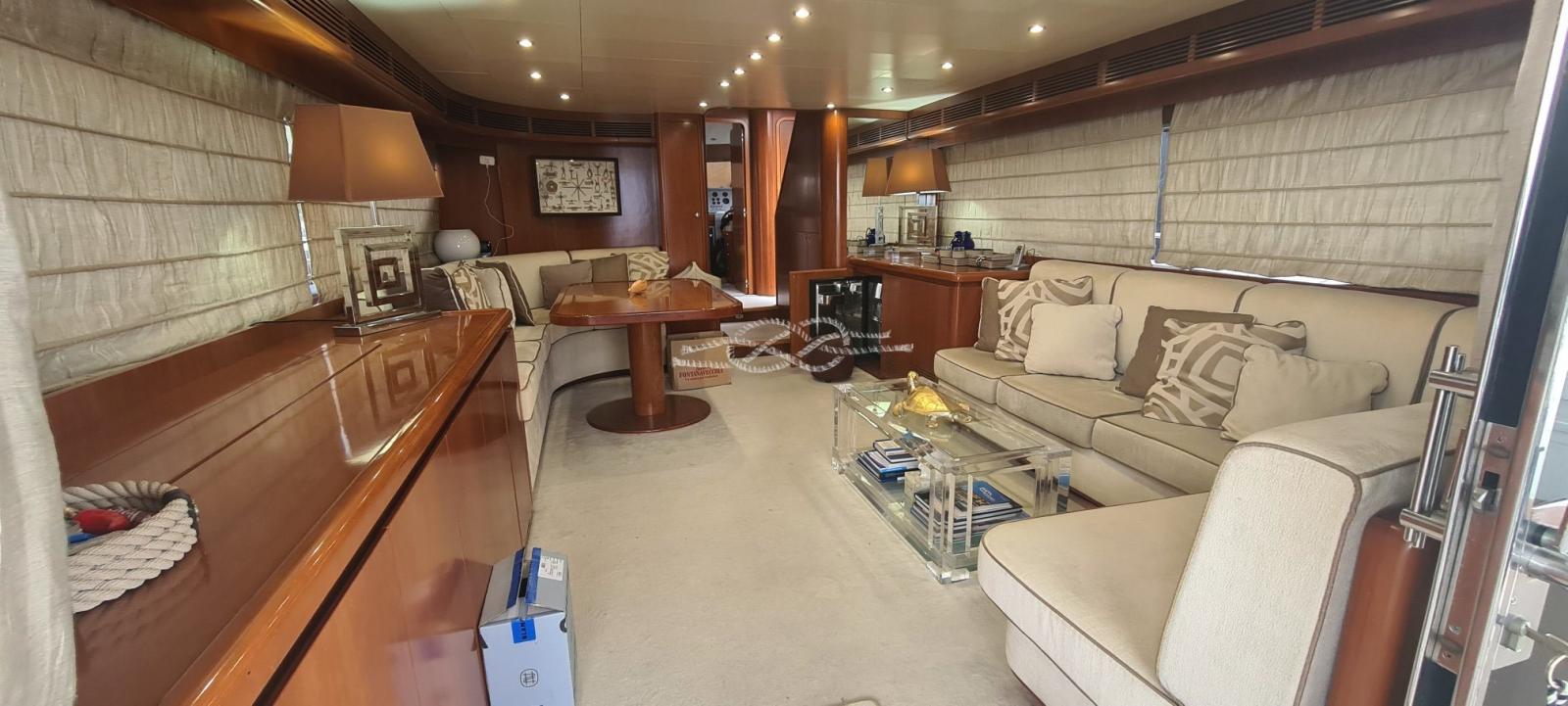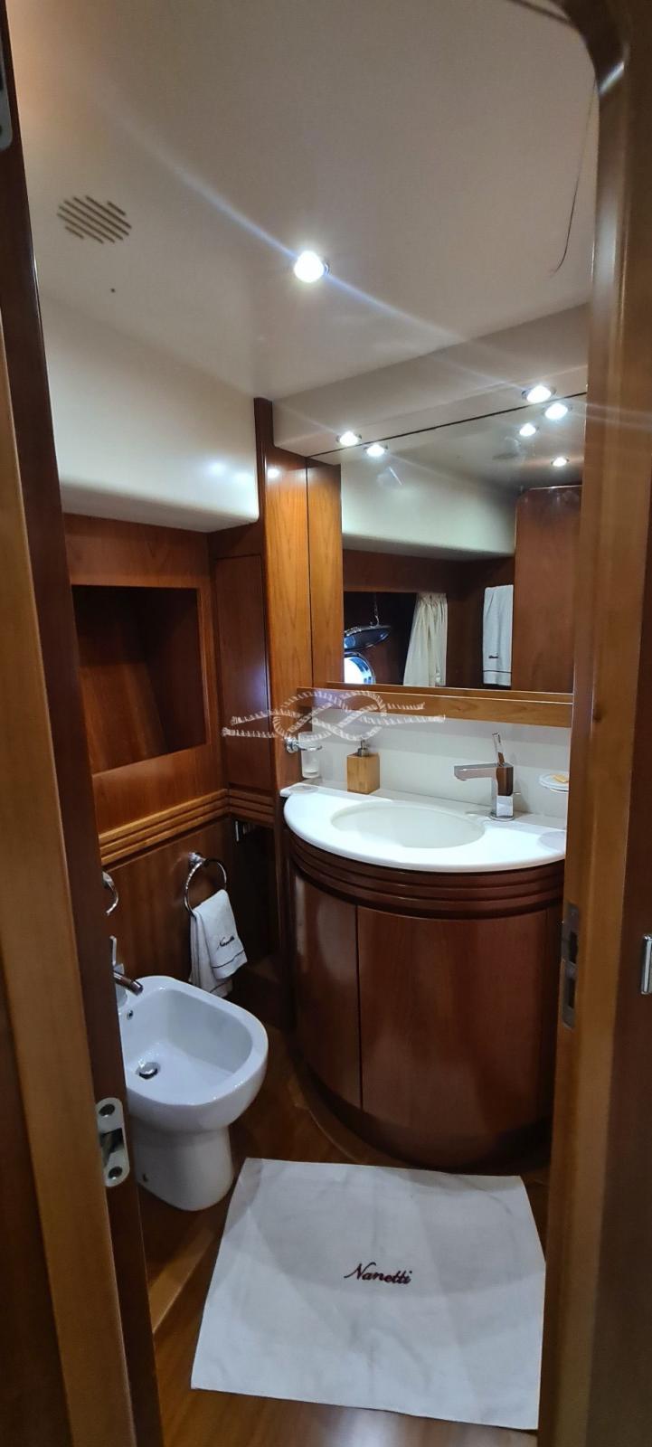 Salone con divano a "L" e tavolo pranzo - day toilet - plancia con dinette - cucina - cabina armatoriale con letto matrimoniale, bagno con doccia separata, cabina armadio - cabina vip con letto matrimoniale, bagno con doccia separata, armadio - cabina ospiti con letto alla francese, letto pullman, bagno e doccia separata - cabina ospiti con letti in piano, letto pullman, bagno con doccia separata.