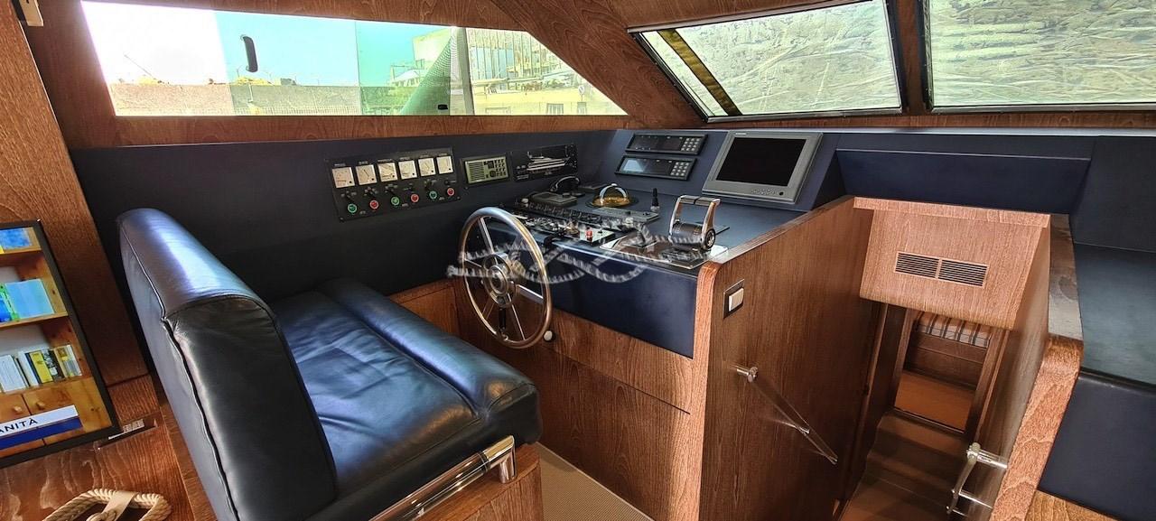 Angolo barra, Antenna radar (Furuno), Comando motori elettronico, GPS (Furuno), Pilota automatico (Furuno NavPilot), Plotter (Furuno NavNet), Radar (Furuno).