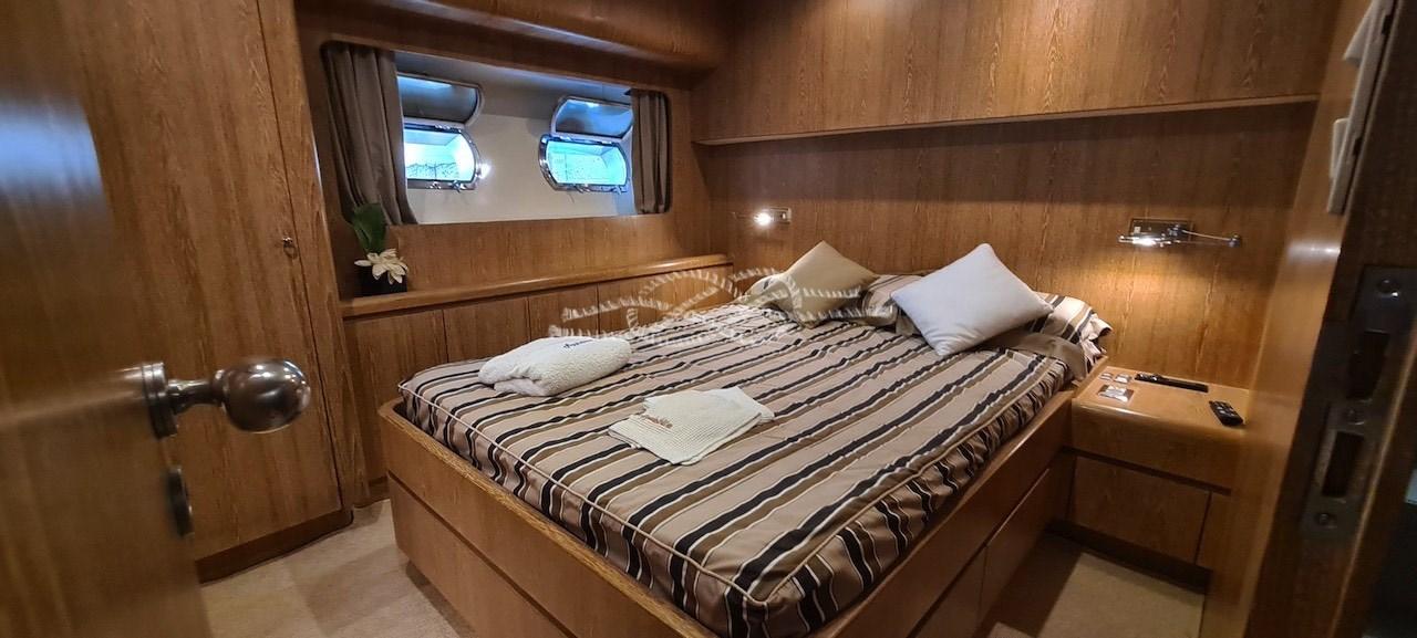 Cabina armatoriale con letto matrimoniale, bagno con doccia separata - cabina Vip con letto matrimoniale, bagno con doccia separata - cabina ospiti con due letti incrociati, bagno con doccia separata.