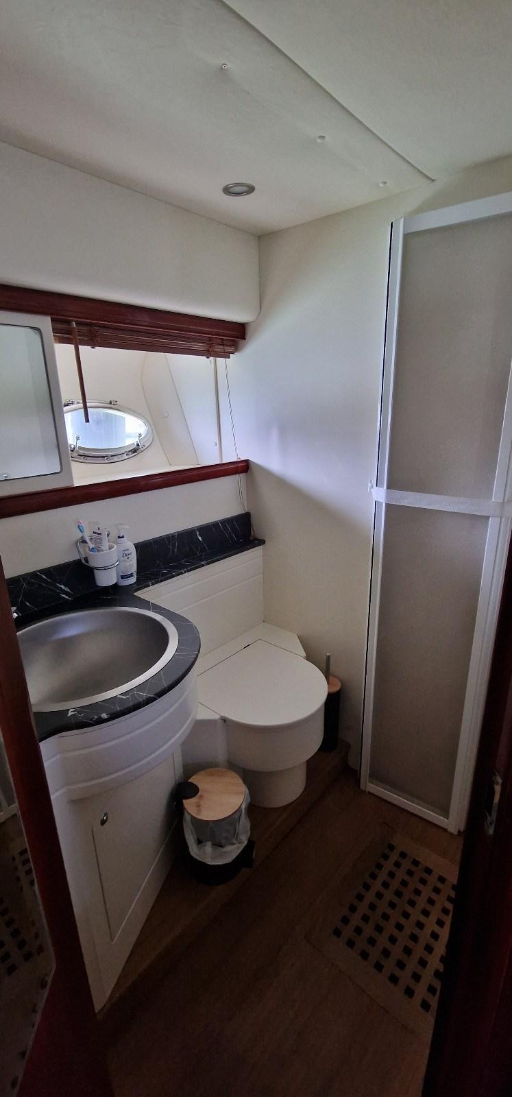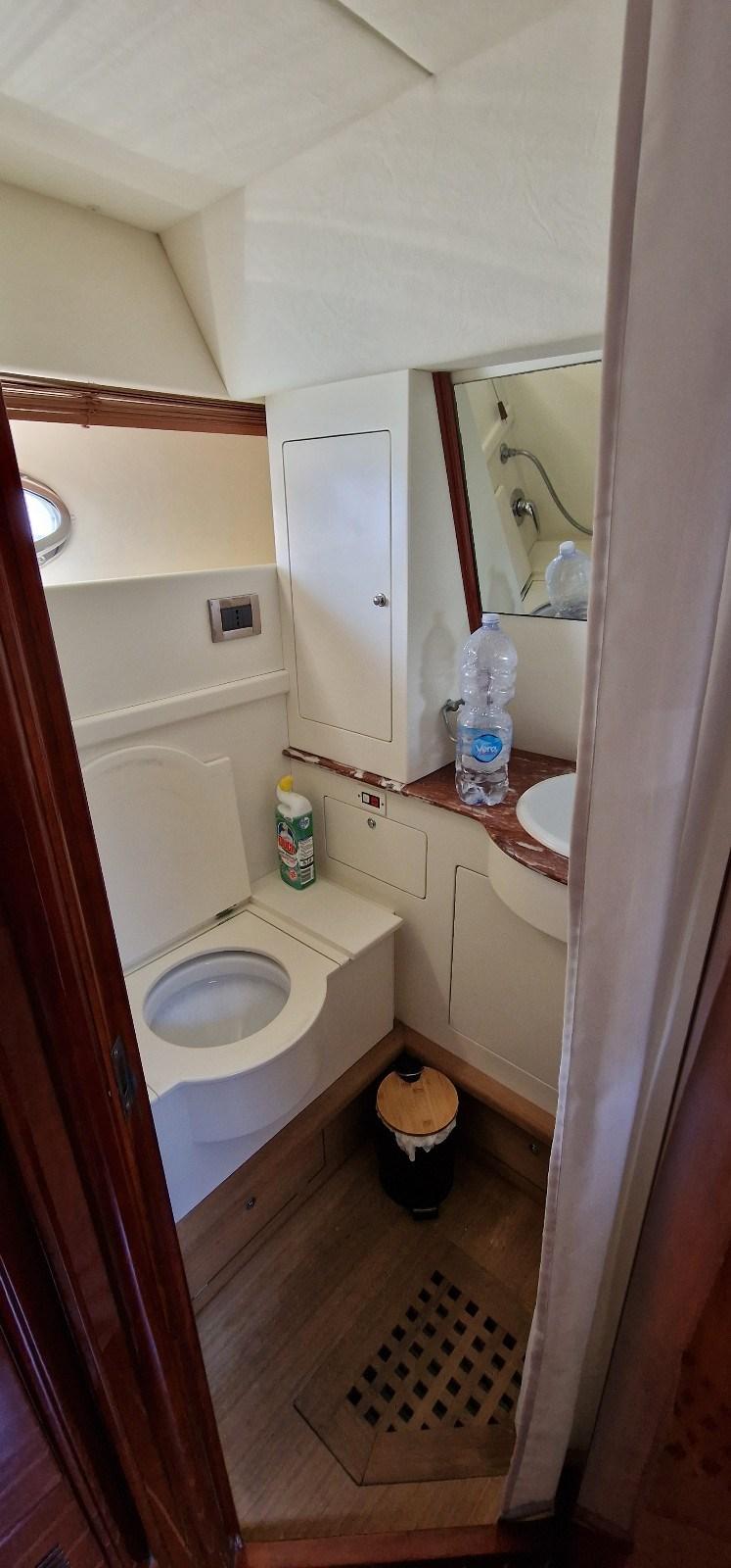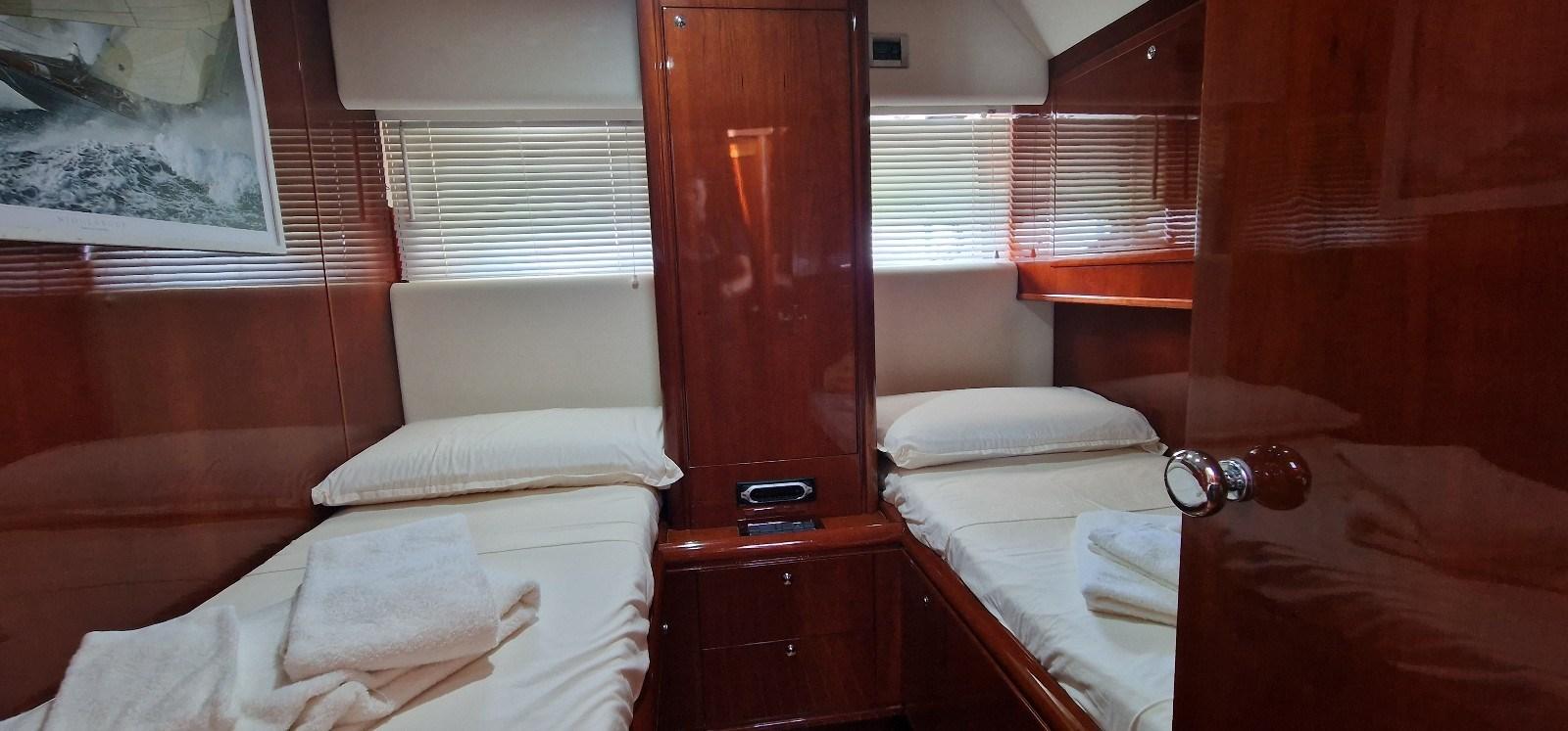Cabina armatoriale con letto matrimoniale e bagno - cabina vip a poppa con letto matrimoniale e bagno - cabina ospiti con due letti e bagno.