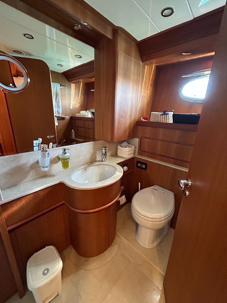 Essenze mobili in ciliegio satinato - parquet interno sia ponte principale che sottocoperta - top mobili bagno in marmo.