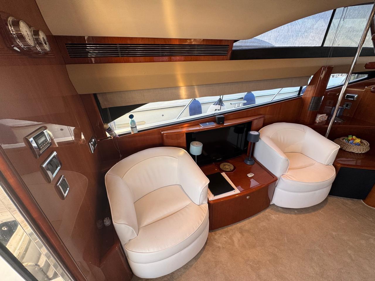 Elica di prua elettrica - elica di poppa - aria condizionata - passerella idraulica - mobile sul fly con grill e lavello - frigo esterno - due frigo interni - piano cottura elettrico - antenna TV - TV LCD in salone e nelle cabine.