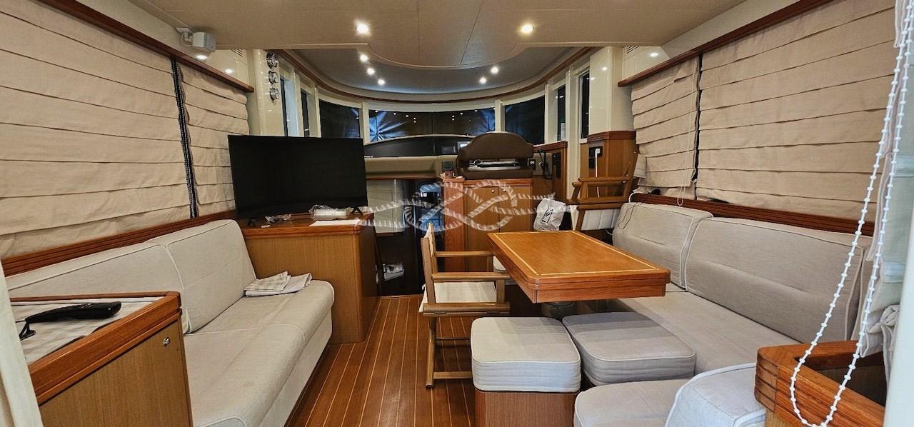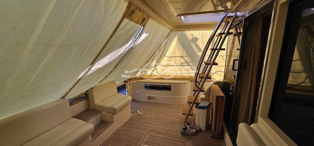 Allarme fumo/gas, Allarme motore, Allarme sentina, Autoclave, 6 Batterie, Camminamenti laterali in teak, Doccia esterna, Flap idraulici, Indicatori Flaps, Lavaggio catena, Passerella, Piattaforma, Pompa di sentina automatica, Pompa di sentina manuale, Pozzetto Teak, Presa 220V banchina, Presa acqua banchina, Tavolo pozzetto, Tender, Tromba, Winch tonneggio di poppa.