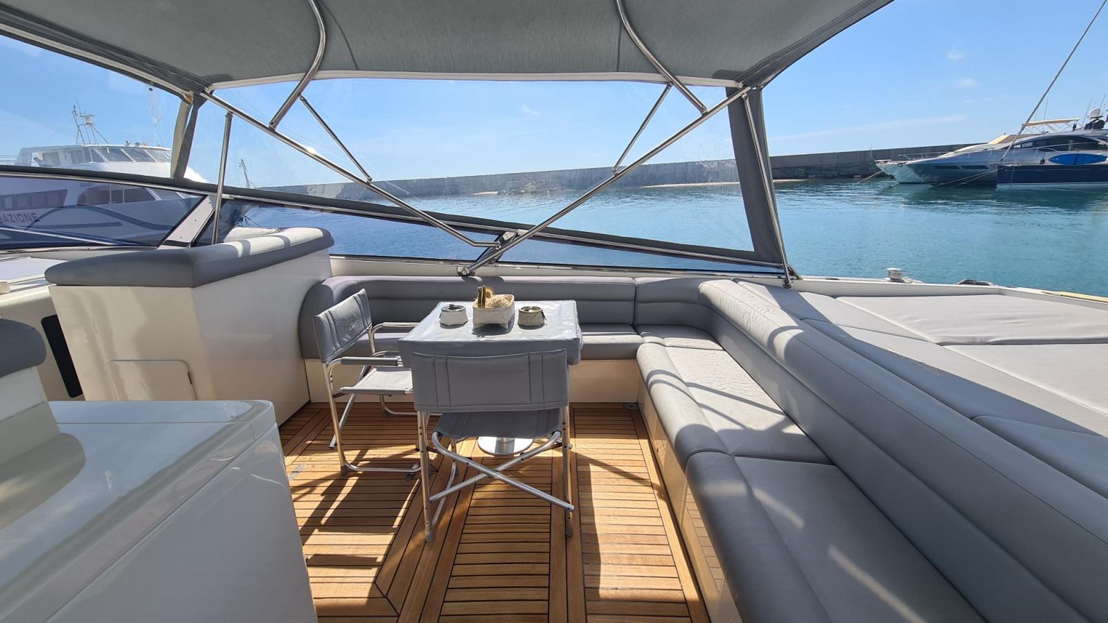 Precedenti lavori: rifacimento pedana di poppa in acciaio e teak - rifacimento mobile bar pozzetto - verniciatura scafo e sovrastruttura - tendalino esterno e tappezzerie esterne ed interne - nuovi elettronici di navigazione.