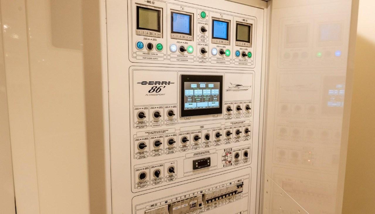 Tender 4 m. con fuoribordo - dissalatore - elica di prua e di poppa idrauliche - frigo (due interni, uno esterno) - freezer - piano cottura elettrico induzione - forno 90 cm - lavastoviglie - lavatrice - asciugatrice - aria condizionata - impianto stereo Fusion - gruppi elettrogeni 2 x 25 Mase - TV LCD (n. 8) - domotica.