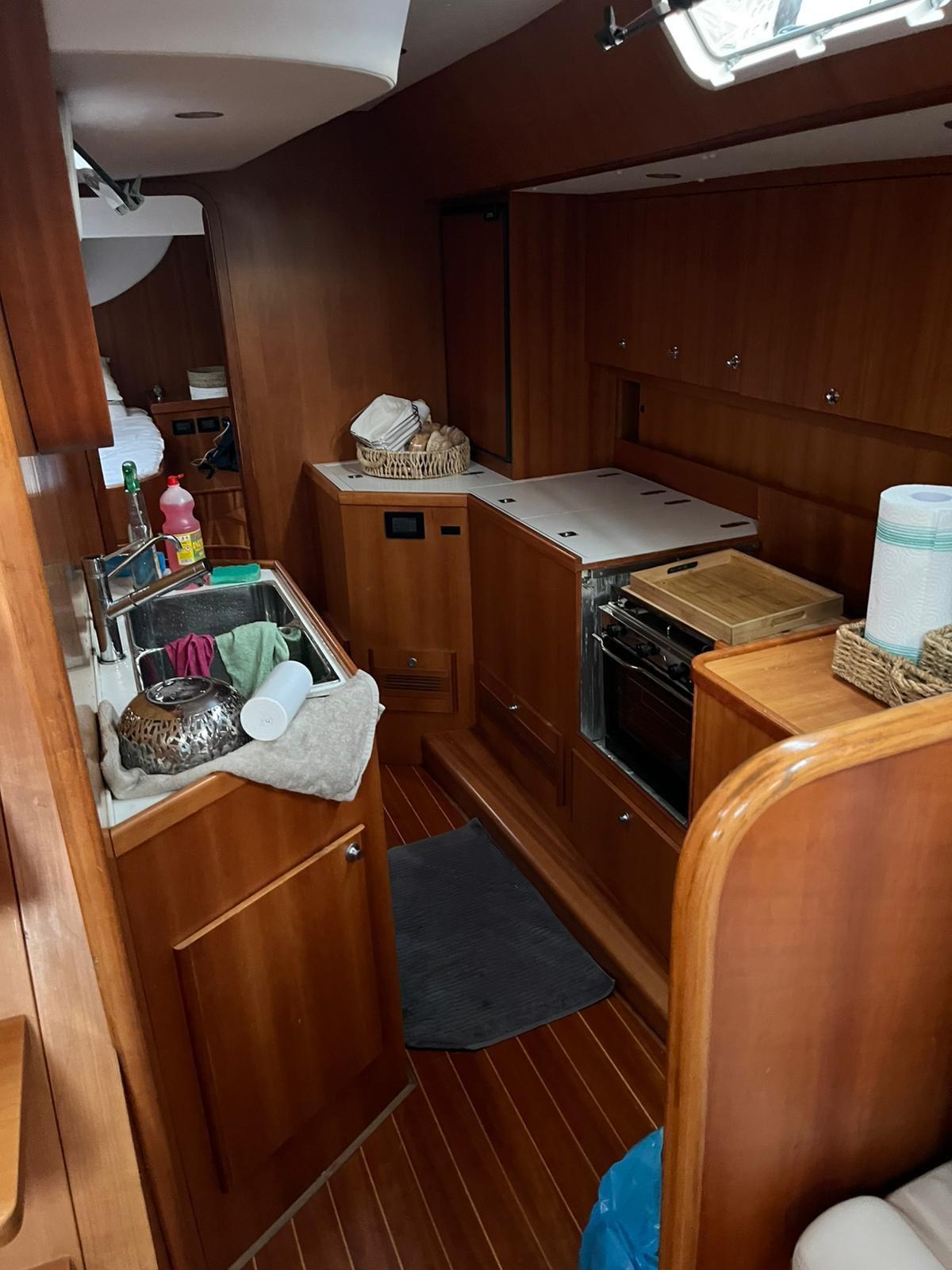 Elica di prua elettrica - pedana di poppa idraulica - generatore - aria condizionata - passarella - tavolo pozzetto - antenna TV - TV LCD - piano cottura a gas 3 fuochi - frigo - forno - lavastoviglie Whirlpool - spray hood - tendalino - cuscineria prendisole sulla tuga - dissalatore Schenker - avvolgifiocco elettrico - bompresso in acciaio - base randa, paterazzo e vang con movimentazione idraulica.