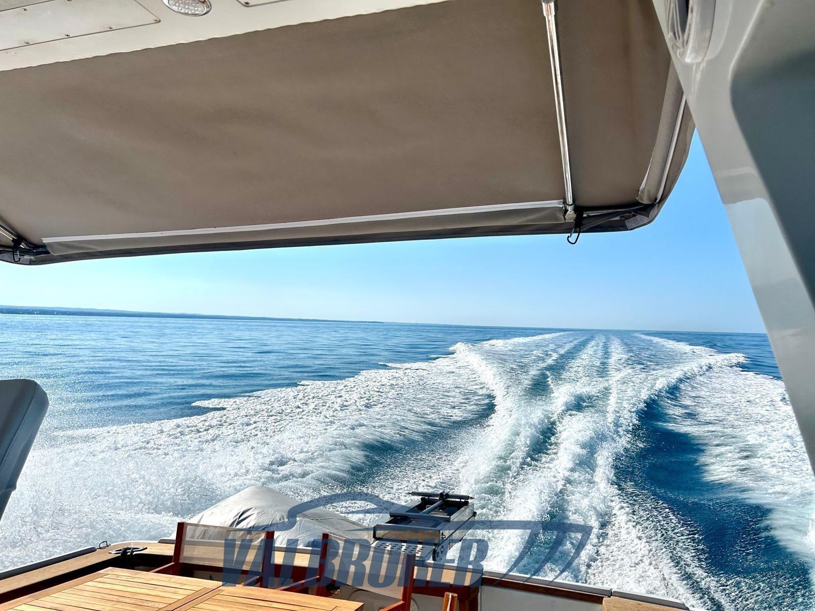 Storico cantiere italiano dell'Adriatico. Qualità e finiture italiane e carena e tenuta di mare come un fisherman Americano. Perfette condizioni, completamente refittata sul Lago di Garda: scafo, motori, interni. Possibilità di renderla natante (non targato). Motori 2xCaterpillar da 350 HP turbo diesel in linea d'asse. Grande tenuta di mare. Sottocoperta troviamo: una cabina armatoriale a prua, toilette con doccia e bidet, dinette trasformabile, cabina singola a poppa. Attualmente visibile in zona Trieste.
