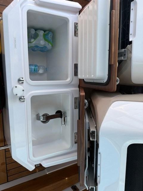 AIS, Antenna radar, Comando motori elettronico, Computer di bordo, 2 Plotter con antenna GPS (Simrad 12 pollici), Quadro comandi, Sedile Copilota.