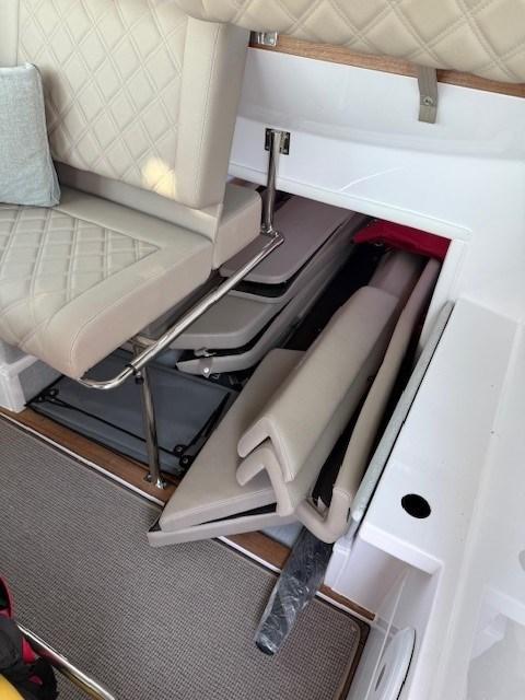 Impianto acque nere, Indicatore del serbatoio del carburante, Pavimento interno in legno, Prese interne 12v, Prese interne 220v, Serbatoio Acque Nere, WC marino elettrico.