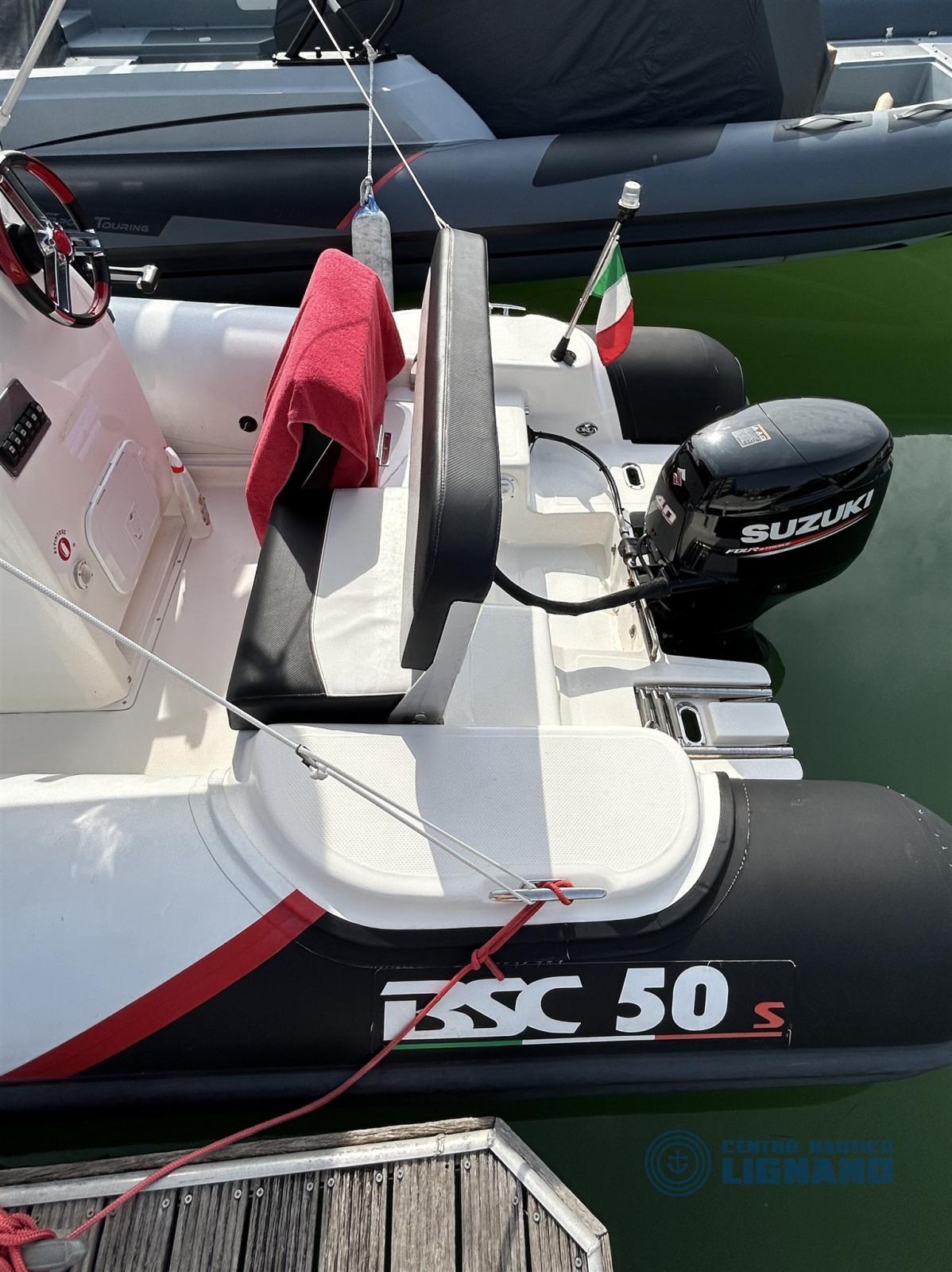 Gommone BSC 50 Sport in condizioni eccellenti, dotato di motore fuoribordo Suzuki DF40ASTL, tutto 2017, tutto sempre tagliandato e ricoverato in capannone d'inverno, in condizioni impeccabili. Utilizzo principalmente in laguna a basse velocità, ore di moto 430.