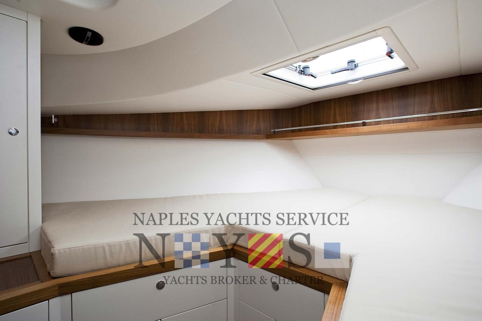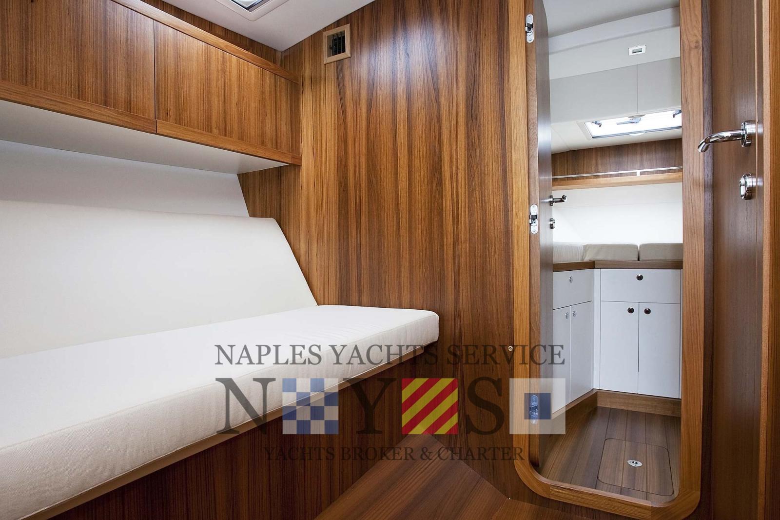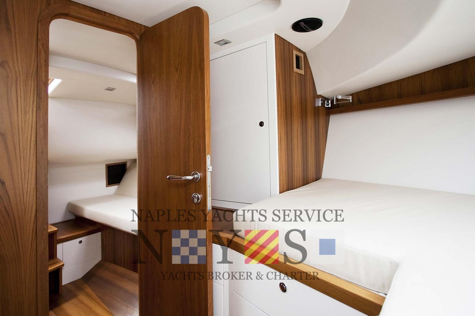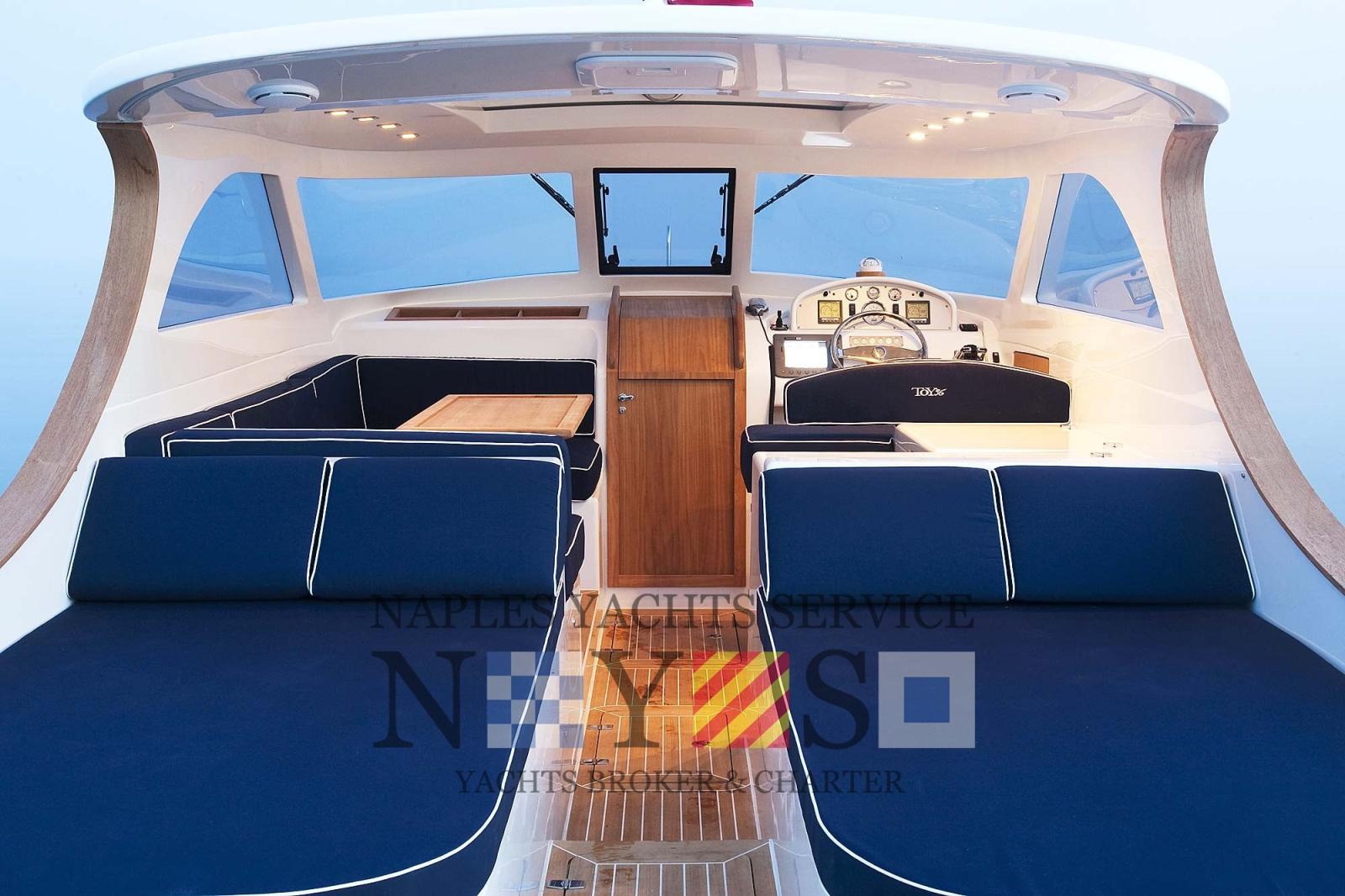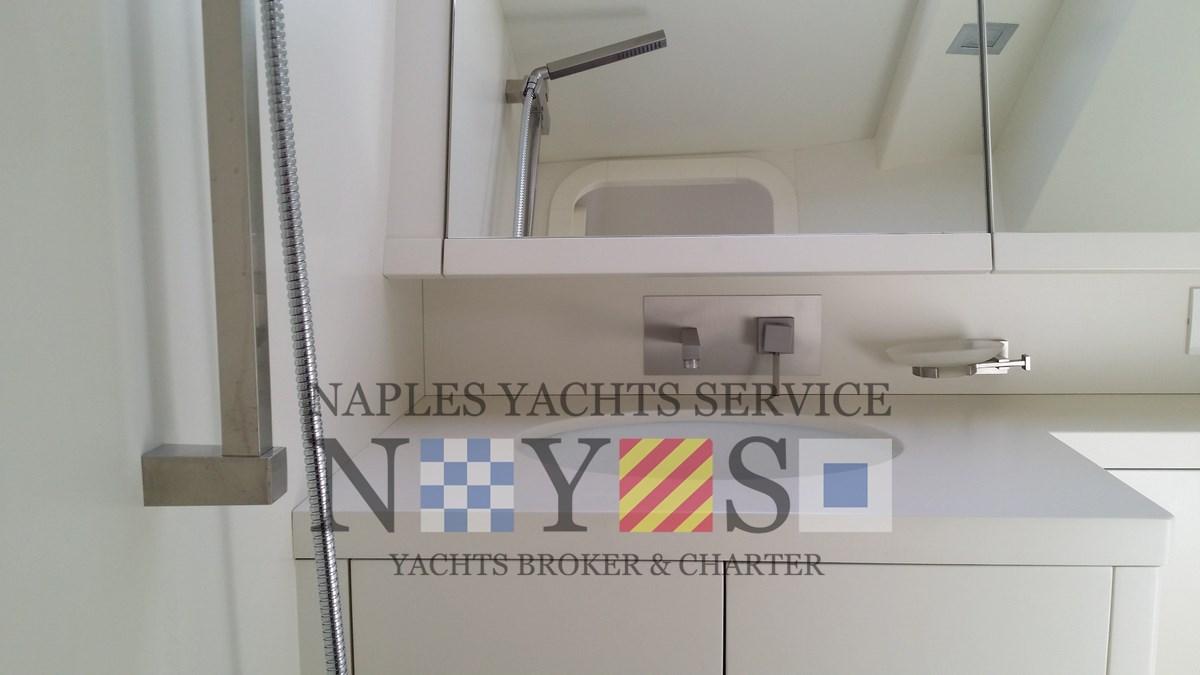 2 Allarme motore, Allarme sentina, Autoclave, 4 Batterie, Camminamenti laterali in teak (Fuga grigia), Doccia esterna, Flap idraulici, Hard top (elettrico), Impianto antincendio, Lavaggio catena, Luci di cortesia, Piattaforma (con piano di calpestio in teak), 4 Pompa di sentina automatica, Porta ingresso, Presa 220V banchina, Raddrizzatore, Salpa Ancore Elettrico, Scaletta da bagno, Tavolo pozzetto, Tromba, T-Top.