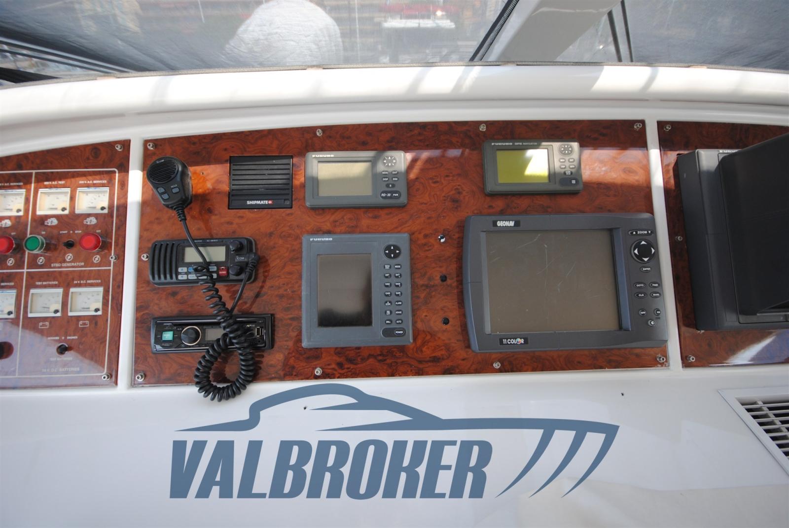 Angolo barra, Display (Furuno), Ecoscandaglio (Furuno), GPS (Furuno), Pilota automatico (Simrad AP20), Plotter (Navionics Geonav 11 colour), Radar (Furuno), Radio VHF (Icom IC M411).