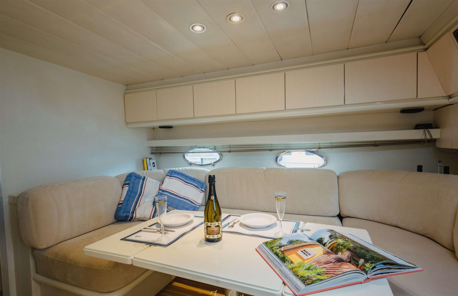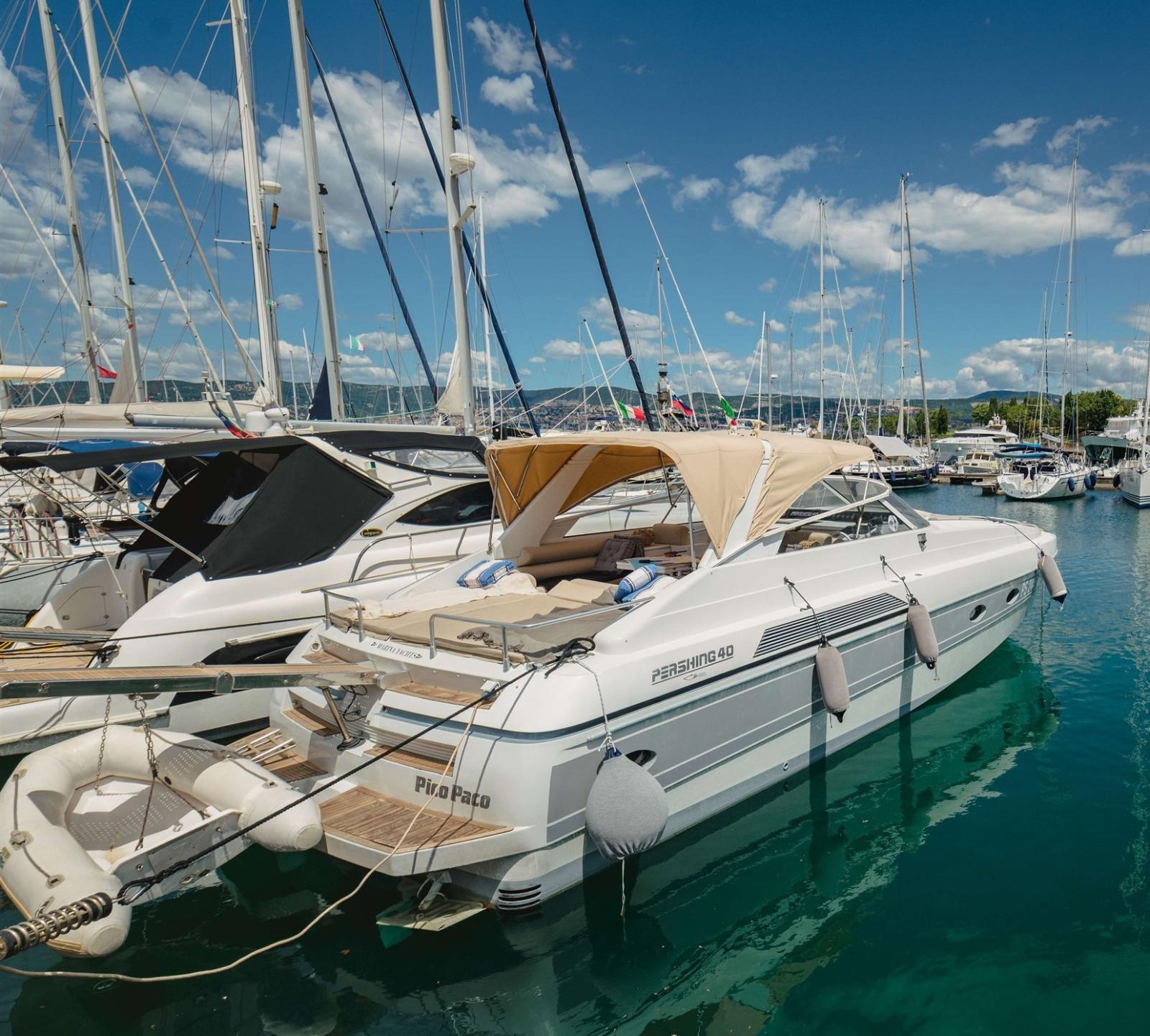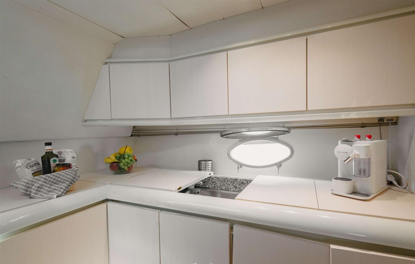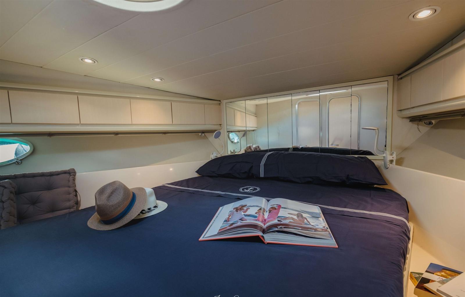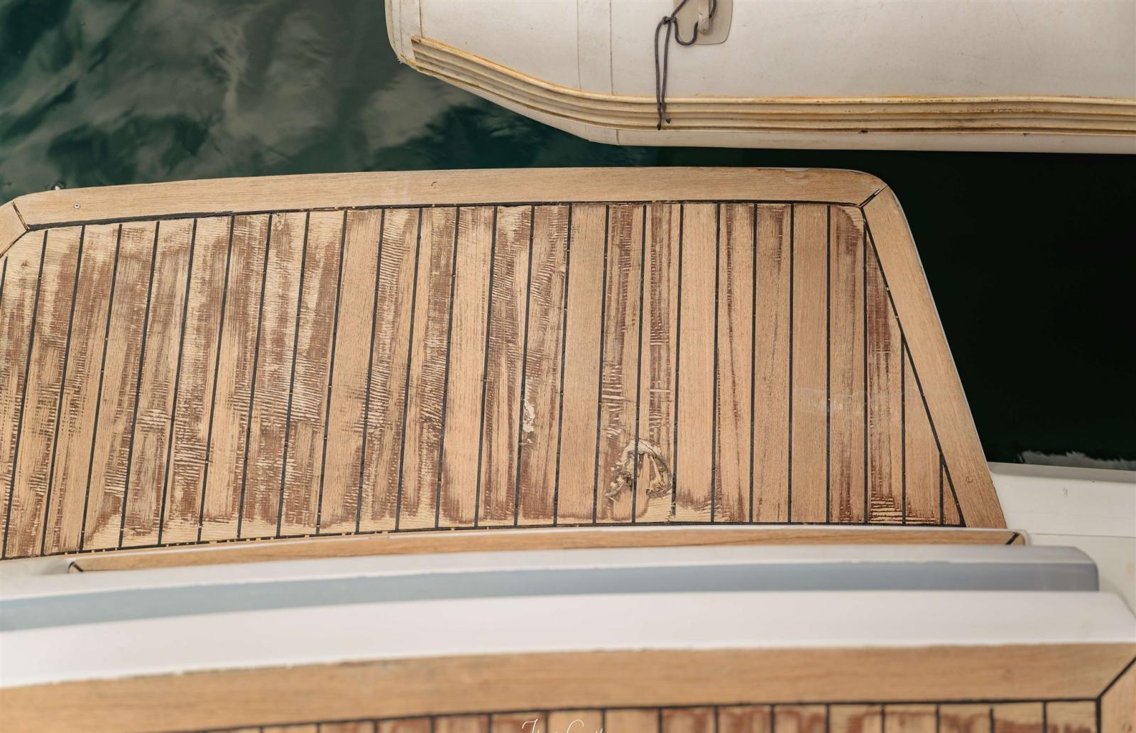 SCAFO: completamente riverniciato bianco/grigio CARENA: revisionata totalmente, rimosse le vecchie antivegetative, fatto il controllo Osmosi negativo, applicato 3 mani di gelshid (primer) e applicata 2 mani di antivegetativa. FASCIAMI: Controllati i vari govoni. SENTINE: di tutte le sentine totale poppa, sala macchine, parte centrale e prua. OPERA VIVA: lucidatura a tutte le parti VTR e Alluminio, 2021 sostituzione dell’oblò sopra la stanza dell’armatore e metà del soffitto interno. PULIZIE: Pulizie interne, pulitura della cuscineria, divani, materassi e tintura con olio per il teak e sistemazione profili teak ELICHE E ASSI: Revisionati e verificati per la rotazione perfetta. Trasmissione in asse. TIMONI: Revisionati FLAP: Revisionati i pistoni ELICA di PRUA: Installata propulsore CT125 Max Power 115kg di spinta, per barche dai 13 ai 26 mt, questo per avere maggiore potenza in caso di venti molto forti. PARTI ELETTRICHE: Fatto un controllo globale di tutte le parti elettriche, dalle luci per la navigazione, agli strumenti collegati al motore come temperatura acqua, carburante, olio, contagiri. Installati n. 2 conta-ore nuovi, cambiato il sistema di luci al led.