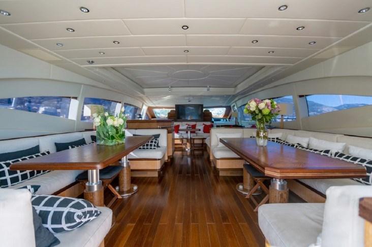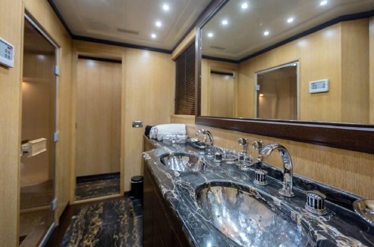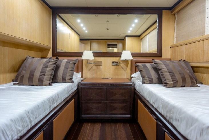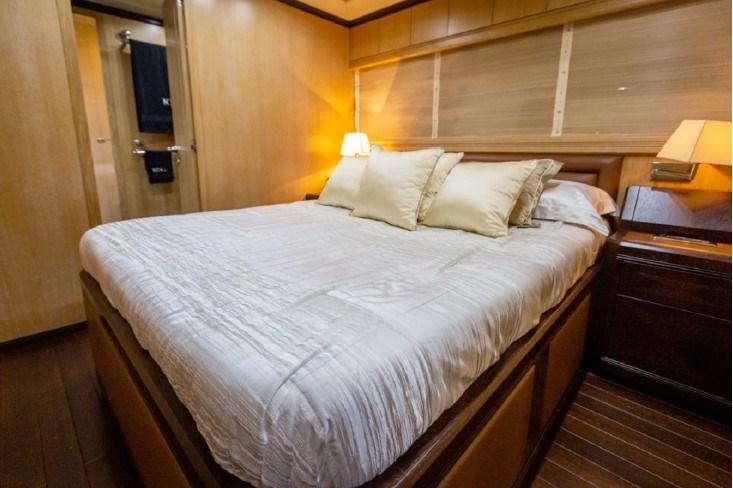 La generosa cabina armatoriale con ampi spazi, dispone di un bagno e sauna, mentre le altre cabine sono arredate con gusto e ben organizzate per consentire il massimo spazio e spazio di stivaggio.