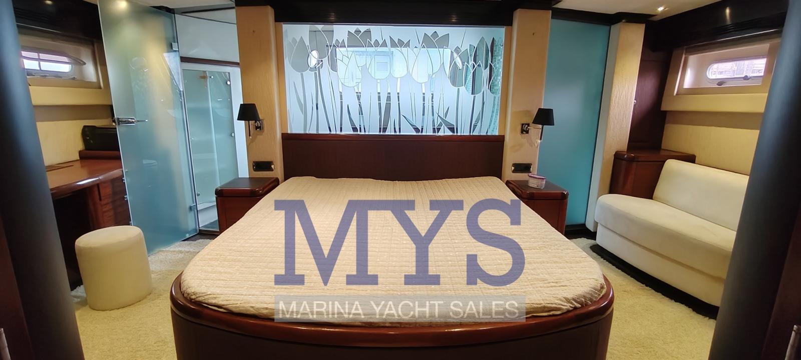 La plancia è completa di strumentazione elettronica avanzata e sistemi di assistenza alla manovra, tra cui Yacht Controller, che consente una gestione precisa e sicura anche in equipaggio ridotto.