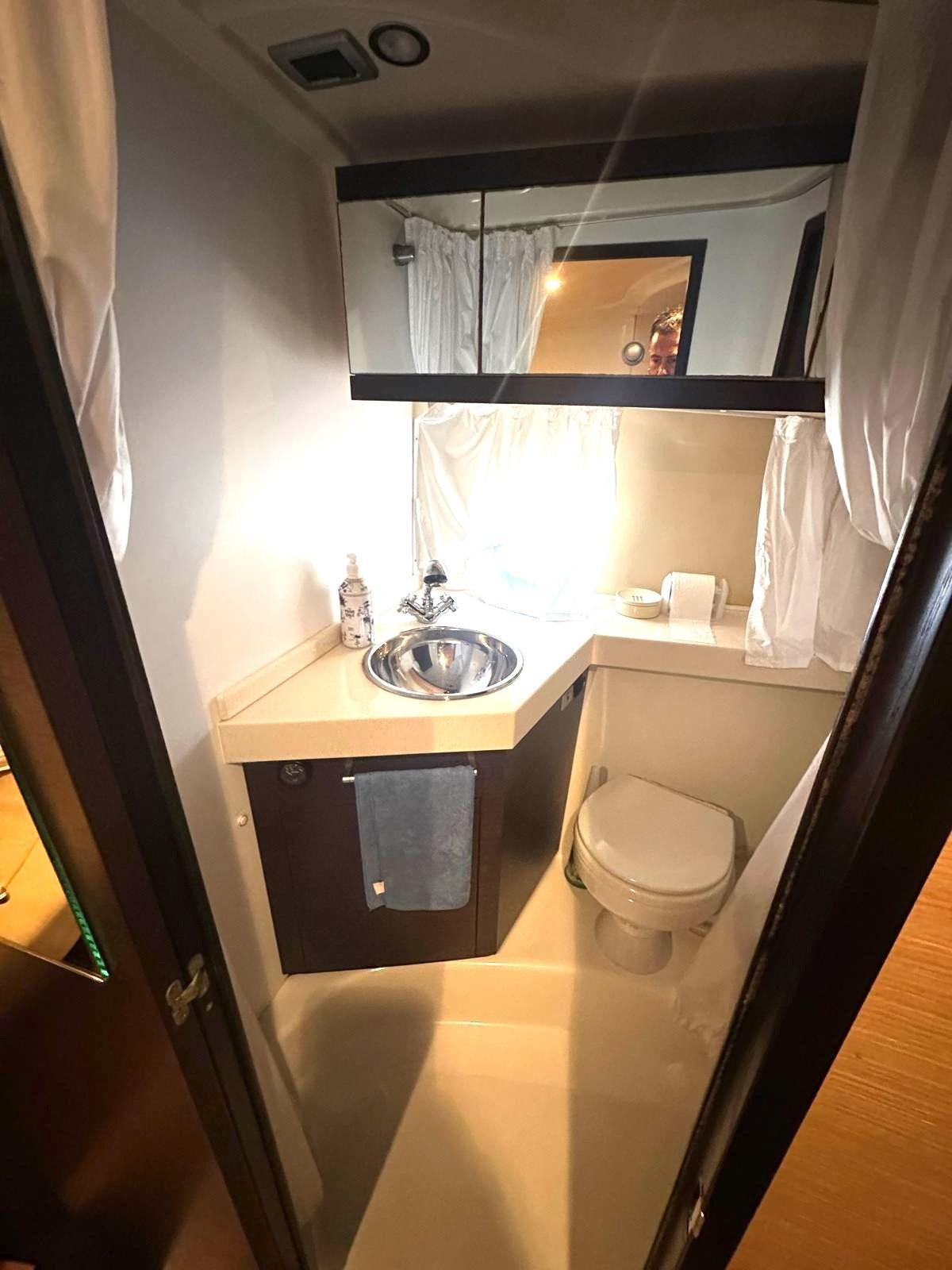Letto matrimoniale a prua - cabina ospiti con letto matrimoniale - bagno con doccia.