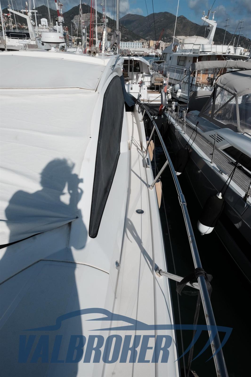 Hard top con porta e tetto apribile. Prima immatricolazione e utilizzo nel 2014. Uno dei primi modelli ad offrire tre cabine doppie e tre bagni. Estremamente versatile con spazi interni importanti. Motori 2xVolvo Penta IPS 600. Attualmente ha circa 500 ore di moto. stato completamente refittato tra il 2023 ed il 2024. I motori sono stati sbarcati nel 2023 e portati a zero ore e sostituiti con il programma ufficiale Volvo. Lavori eseguiti nel 2024: Revisione IPS da officina autorizzata Volvo, nuovo chartplotter Raymarine con radar, Pulizia serbatoi diesel, nuovo caricabatterie, nuove batterie servizi, rifacimento sedili pilota, nuovo teak pozzetto. Rina valido fino al 2028.