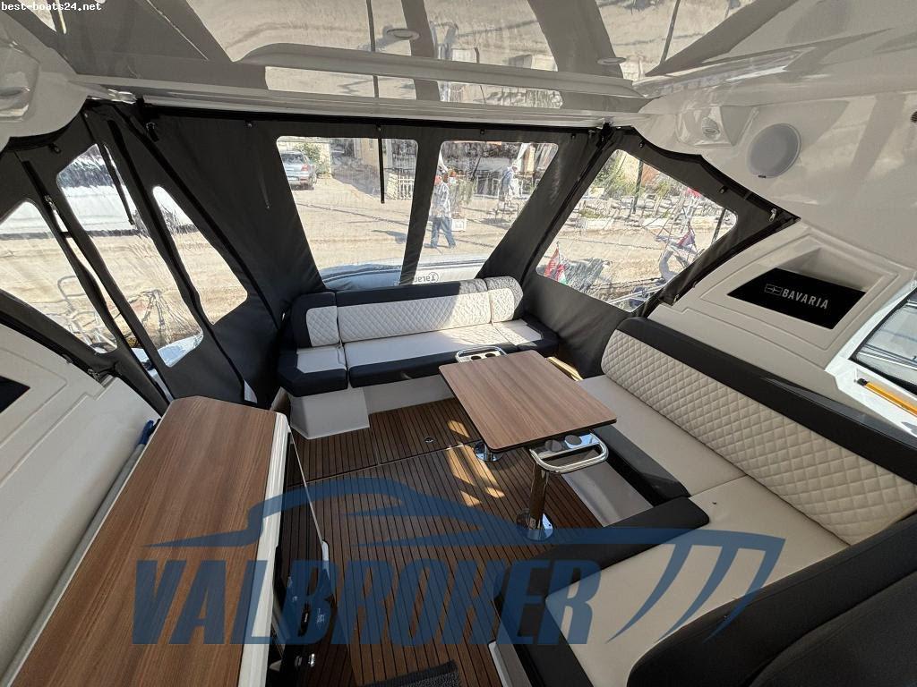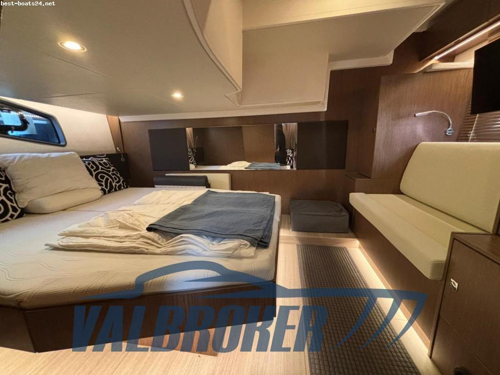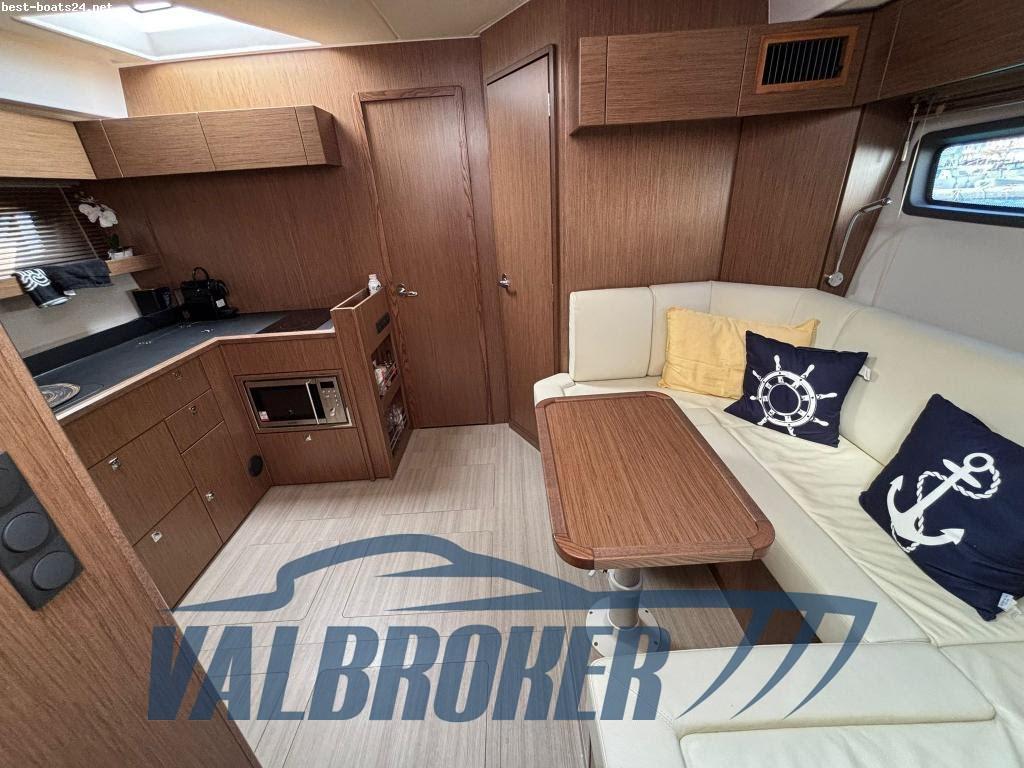 Con un confortevole pozzetto e un ampio prendisole trasformabile in un'area lounge con tavolo frontemare, insieme alla spaziosa plancetta maggiorata, è l'imbarcazione a motore ideale per giornate piacevoli in mare con famiglia e amici. Hard top apribile, piattaforma maggiorata in teak, radar, Joystick Volvo Penta, doppio display Simrad, computer di bordo Volvo, elica di prua, aria condizionata caldo/freddo. Sottocoperta ospita due cabine: cabina armatoriale a poppa a tutto baglio e una cabina VIP a prua. Motori 2x Volvo Penta D6 380 common rail turbodiesel con poche ore di moto.